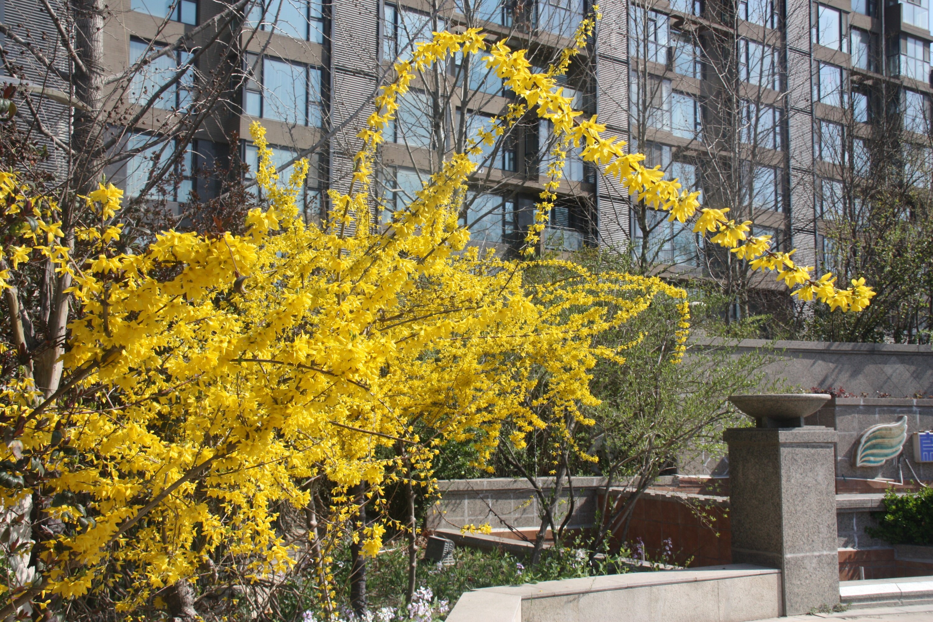 连翘:枝条拱形,满枝金黄,艳丽可爱