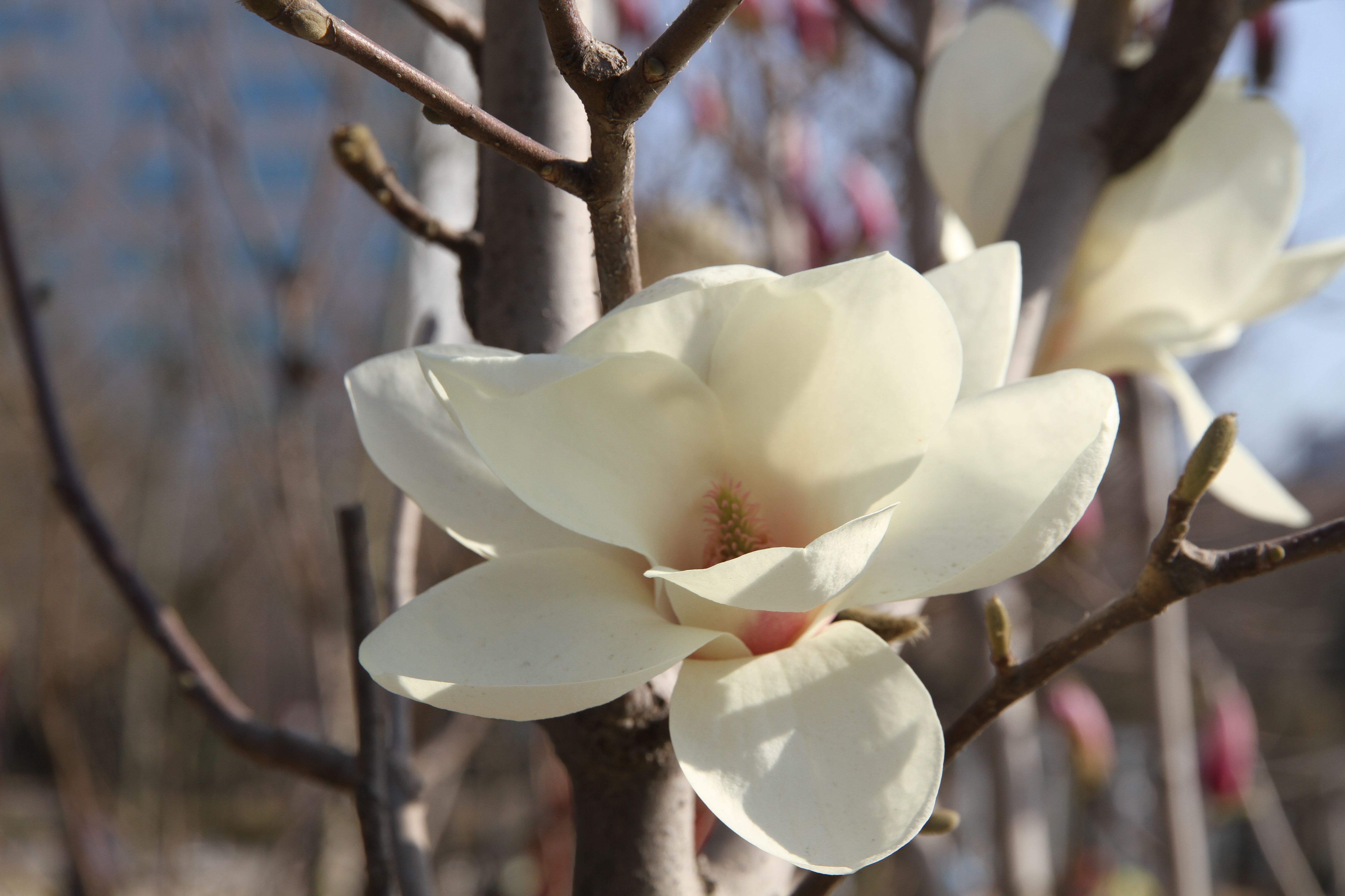 白玉兰、杏树、连翘