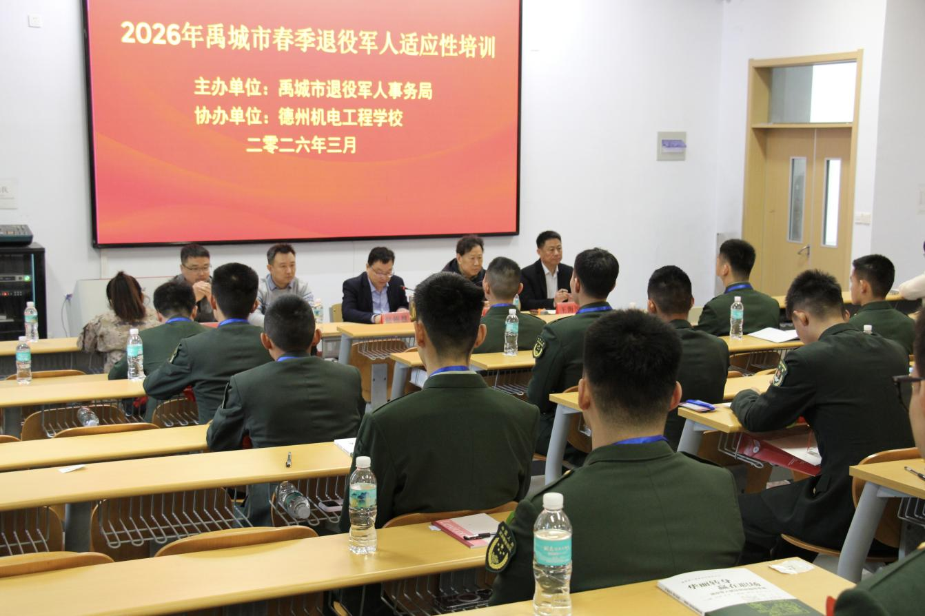 3月25日上午,禹城市2026年自主就业退役军人欢迎仪式暨适应性培训班在德州机电工程学校正式开班,全市春季禹城籍39名退役军人参加此次培训。