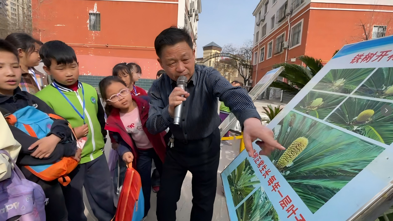 活动中,育英学校宋传峰校长带领小记者参观校园,重点讲解校内“铁树开花”的奇观,结合铁树难结果的特点,诠释坚韧执着、持之以恒的精神,鼓励孩子们脚踏实地、奋勇争先。他还分享了学校优秀学子刘增旺考入清华大学的事迹,讲述其全面发展、永不言弃的奋斗历程。榜样力量催人奋进,小记者们认真聆听、踊跃互动。
