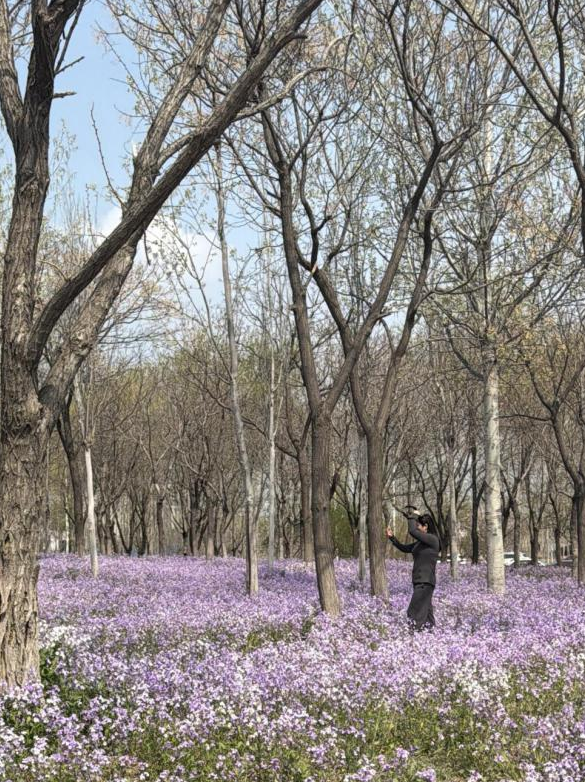 景区的林下空间里,成片的二月兰迎着春光肆意盛放,淡紫色的小花连成一片,宛如氤氲的紫色雾霭,浪漫又治愈,一跃成为热门打卡点位。游客们穿梭在花林间,俯身轻嗅花香,抬手定格美景,随手一拍都是氛围感满满的春日大片,朋友圈的春日美图,被这里狠狠刷屏。