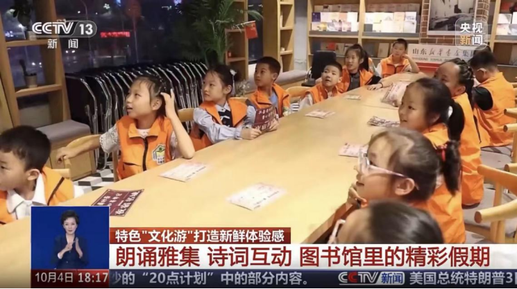 当活动获央视新闻聚焦报道,团队成员迅速复盘,进一步探索“书店+”的可能性。她们主动对接德州市博物馆,把书店的阅读服务搬进博物馆展厅。为了让文物“活起来”,她们把晚安故事会和文物故事结合,用光影技术让千年文物开口讲述历史,真正实现了让孩子们“枕史而眠”。