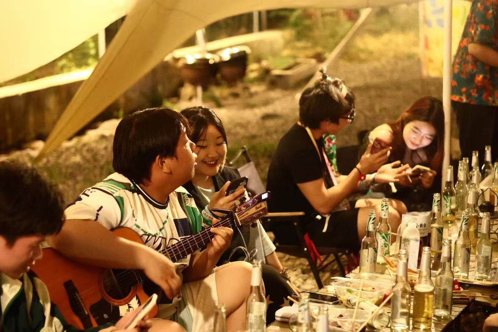 “一天最多接待200人,再多就忙不过来了。”李霞告诉记者,前来露营的多是年轻人、亲子家庭或企业团建群体。基地不仅提供帐篷、天幕等基础装备,还配套了烧烤炉、火锅、烤盘,并组织K歌、篝火晚会、烟花秀、高尔夫、蹦蹦床、飞盘、拔河等娱乐活动,桌游、狼人杀、麻将等室内项目同样一应俱全。
