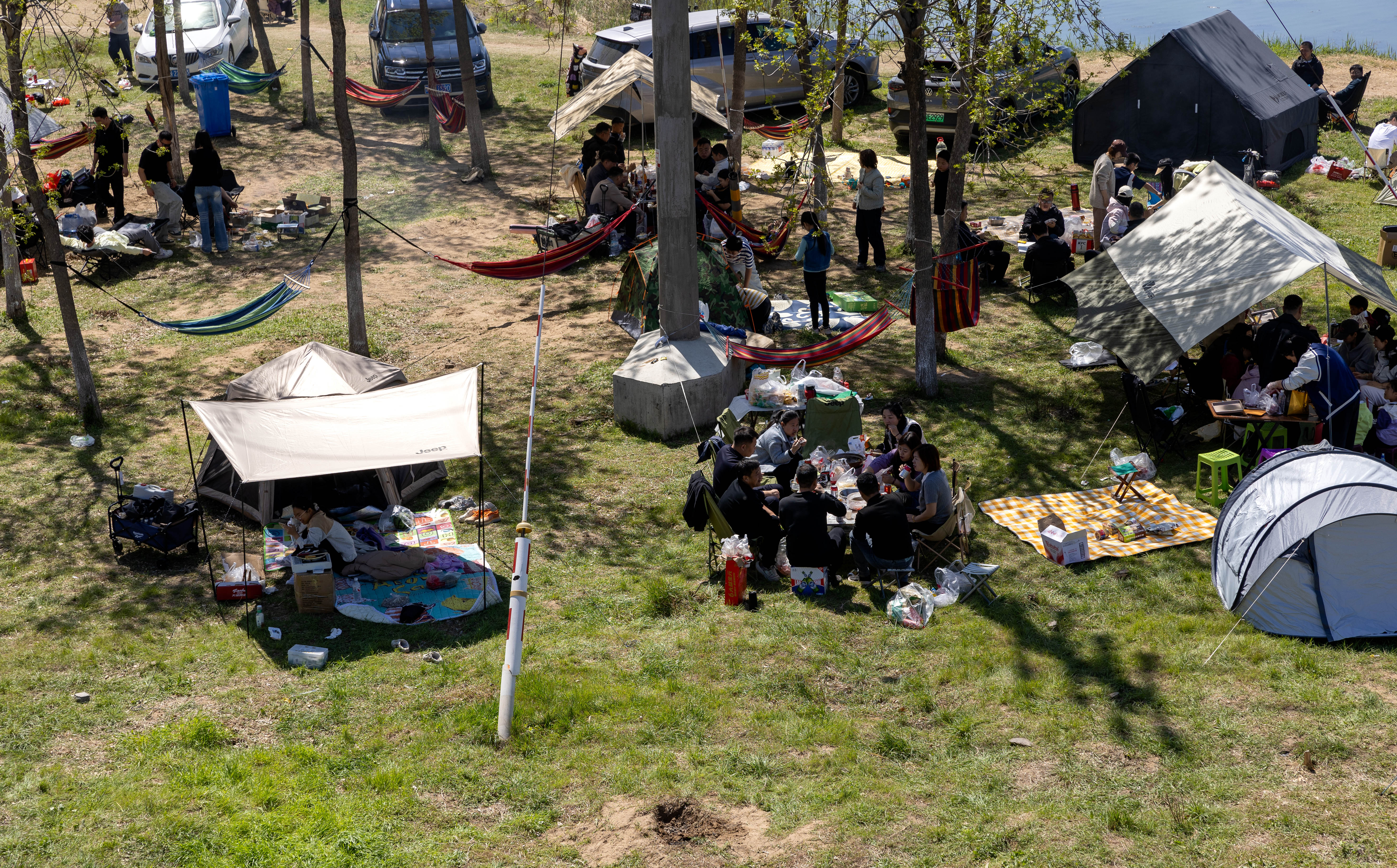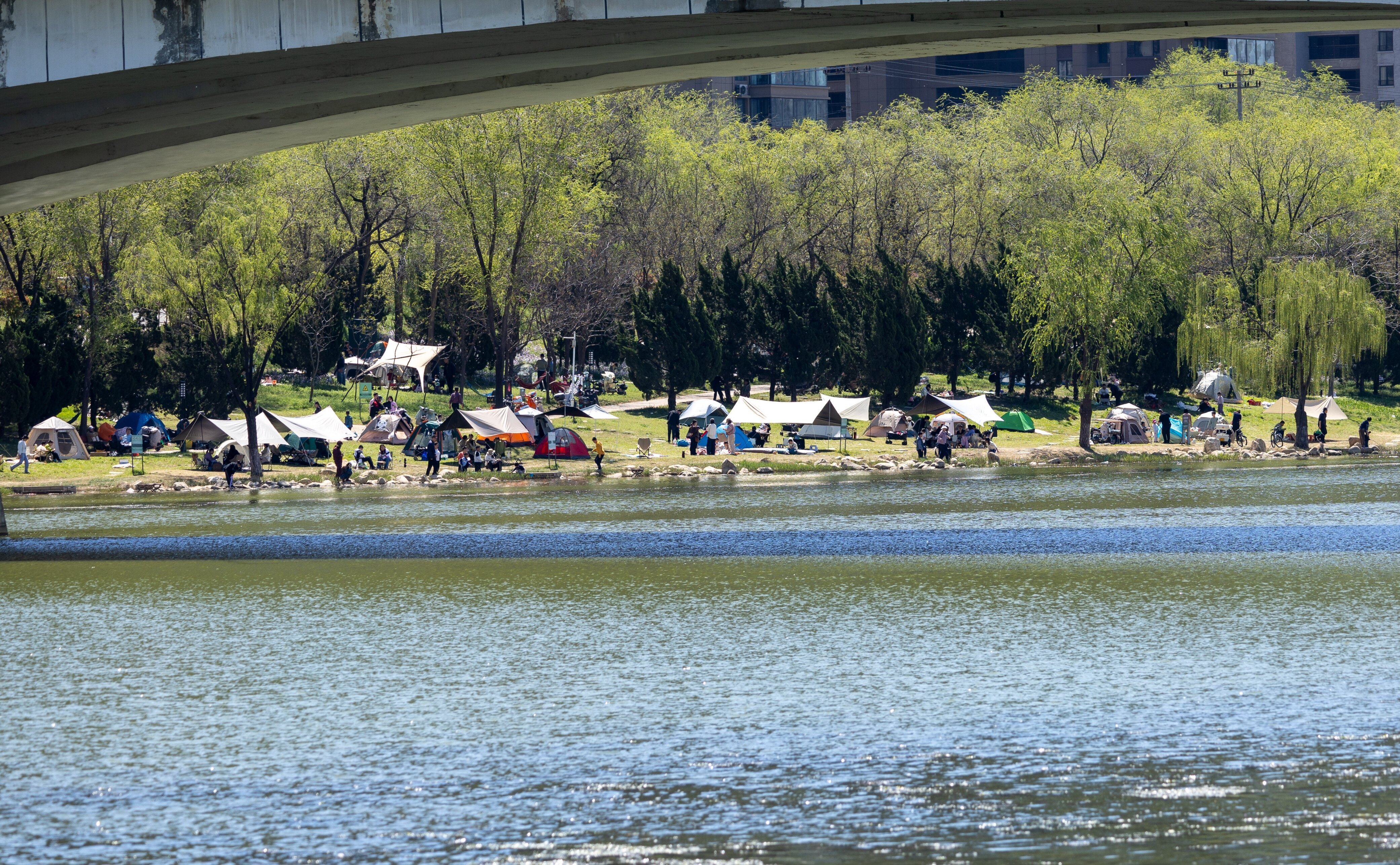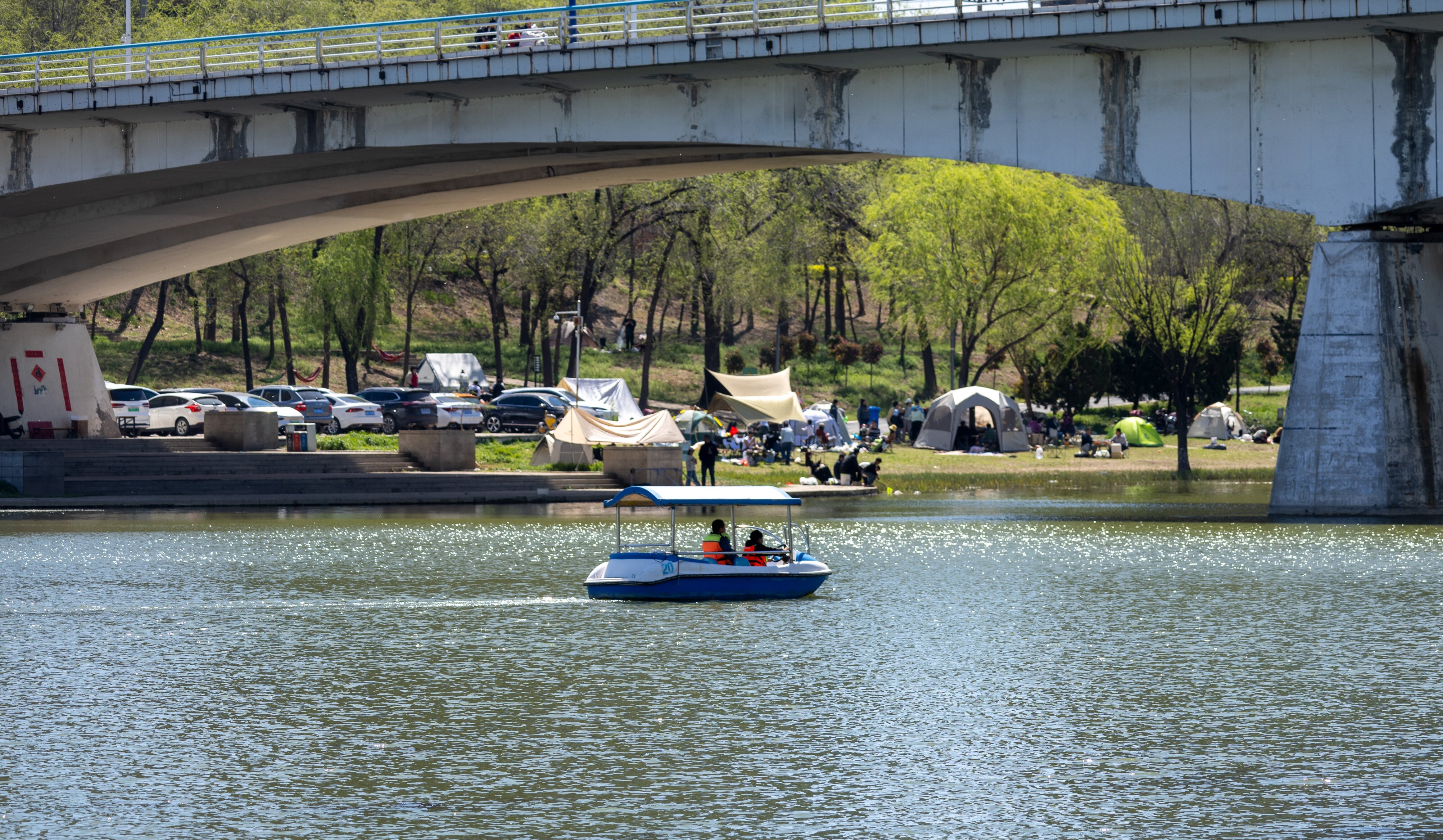 清明假期,绿意盎然,不少人走出家门,来到充满春意的岔河河畔。岸边的绿意,河畔的春风,荡漾的水波,犹如一幅现代版的“清明上河图”。
