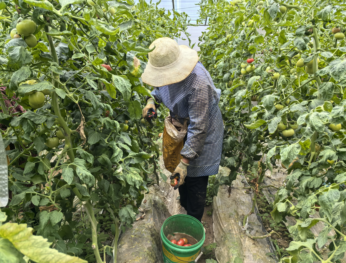 糜镇高标准果蔬园区由糜镇党委政府出资建立,国企隆晟农业发展有限公司运营管理,共种植55个果蔬大棚。其中,与寿光市合合供应链管理服务有限公司合作进行36个大棚的牧心西红柿种植。此外还进行了哈密瓜、葡萄、黄瓜、豆角等果蔬的种植。园区实行果蔬精细化管理模式,为周边40多名村民长期提供工作岗位。“我在这里工作好几个月了,离家近,每天能挣七八十块钱。看着我们精心照顾的西红柿能卖的这么好,心里很高兴。”糜镇中刘村村民孙书兰说道。