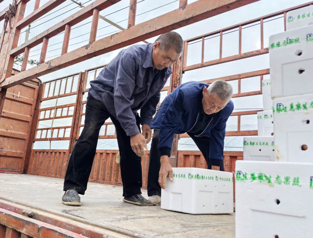 据悉,自3月份以来,36个大棚的牧心西红柿陆续进入成熟期,每天上午都会进行采摘,下午用货车把西红柿运往合作公司寿光市合合供应链管理服务有限公司进行分拣,线上线下销售。预约货车到来后,工人们将一箱箱西红柿装入货车,进行称重、核算数目。“我们今天共采摘西红柿5809.5公斤,装箱430个。最近采摘的西红柿越来越多,剩余的西红柿将陆续成熟,一直持续到6月份。”农技指导员张成吉说道。