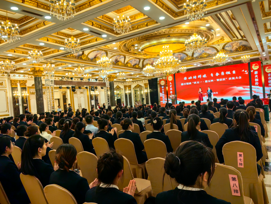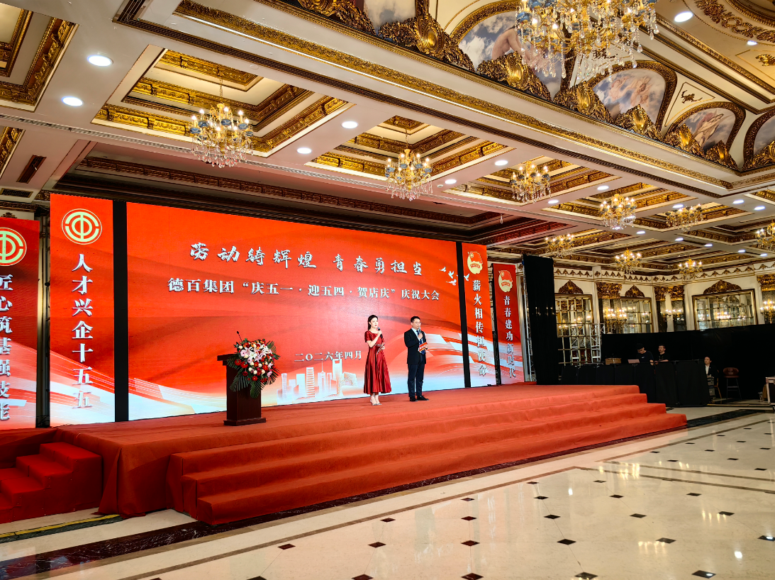 4月23日,德百集团“劳动铸辉煌 青春勇担当”——2026年庆五一·迎五四·贺店庆庆祝大会在澳德乐五楼金色大厅举行。