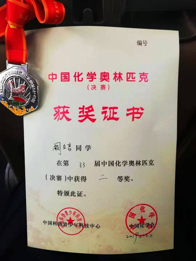 近日,第33届中国化学奥林匹克(决赛)暨冬令营在河南郑州落下帷幕。此次决赛有来自包括澳门特别行政区在内的30个省级行政区近350名选手参与,代表山东队参赛的德州一中学子阚立言同学准备充分,发挥出色,取得一枚银牌的优异成绩。