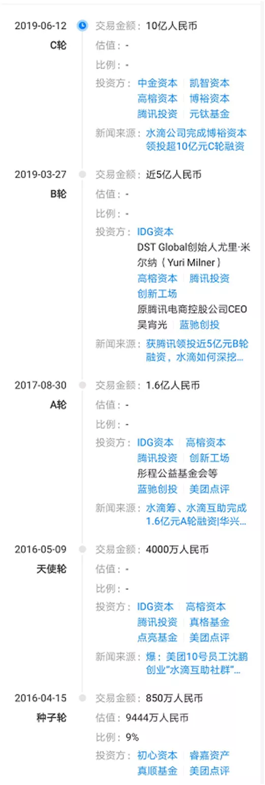 天眼查显示,水滴筹为北京纵情向前科技有限公司旗下产品,该公司于今年6月份完成C轮融资,投资方包括腾讯资本、高榕资本、中金资本等。腾讯资本在天使轮时就已入场,如今已是第4次追加投资。