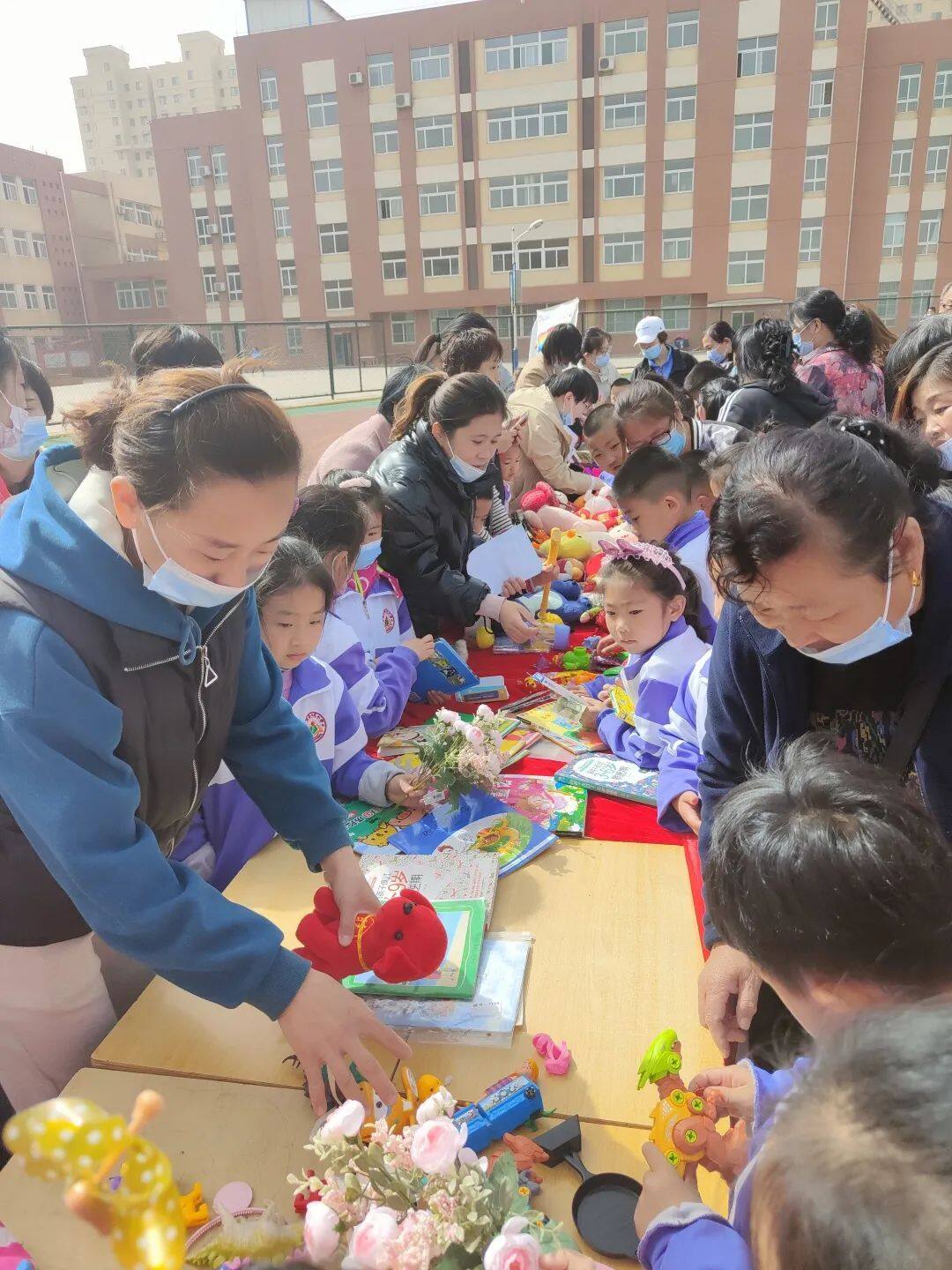 启动仪式结束后,与会领导共同观摩了任继愈小学的红领巾义卖活动。