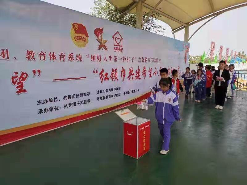 据介绍,“扣好人生第一粒扣子”主题教育实践活动“牵手同行 点亮希望——红领巾共建希望小屋”项目是由德州团市委、市教育体育局、市少工委共同发起,活动旨在为深入贯彻落实习近平总书记关于少年儿童和少先队工作的重要论述,贯彻落实《中共中央关于全面加强新时代少先队工作的意见》精神,教育引导少先队员关心他人、乐于奉献,在实践活动中培育全心全意为人民服务的精神,逐步养成共产主义道德,为全面推进乡村振兴贡献“红领巾”力量,帮助全市少年儿童扣好人生第一粒扣子。