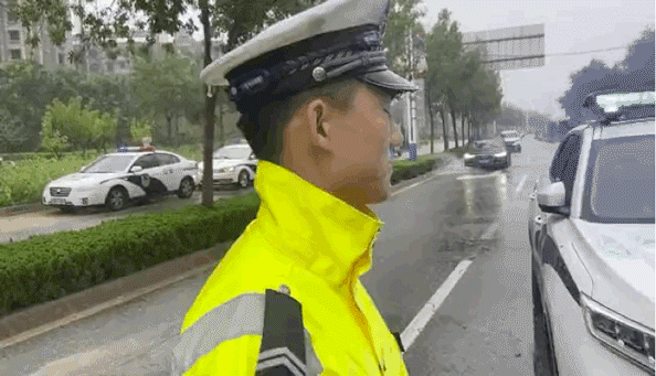 7月29日,经济技术开发区分局民警在东方红路涵桥下执勤,及时提醒和帮助过往车辆加固车牌。