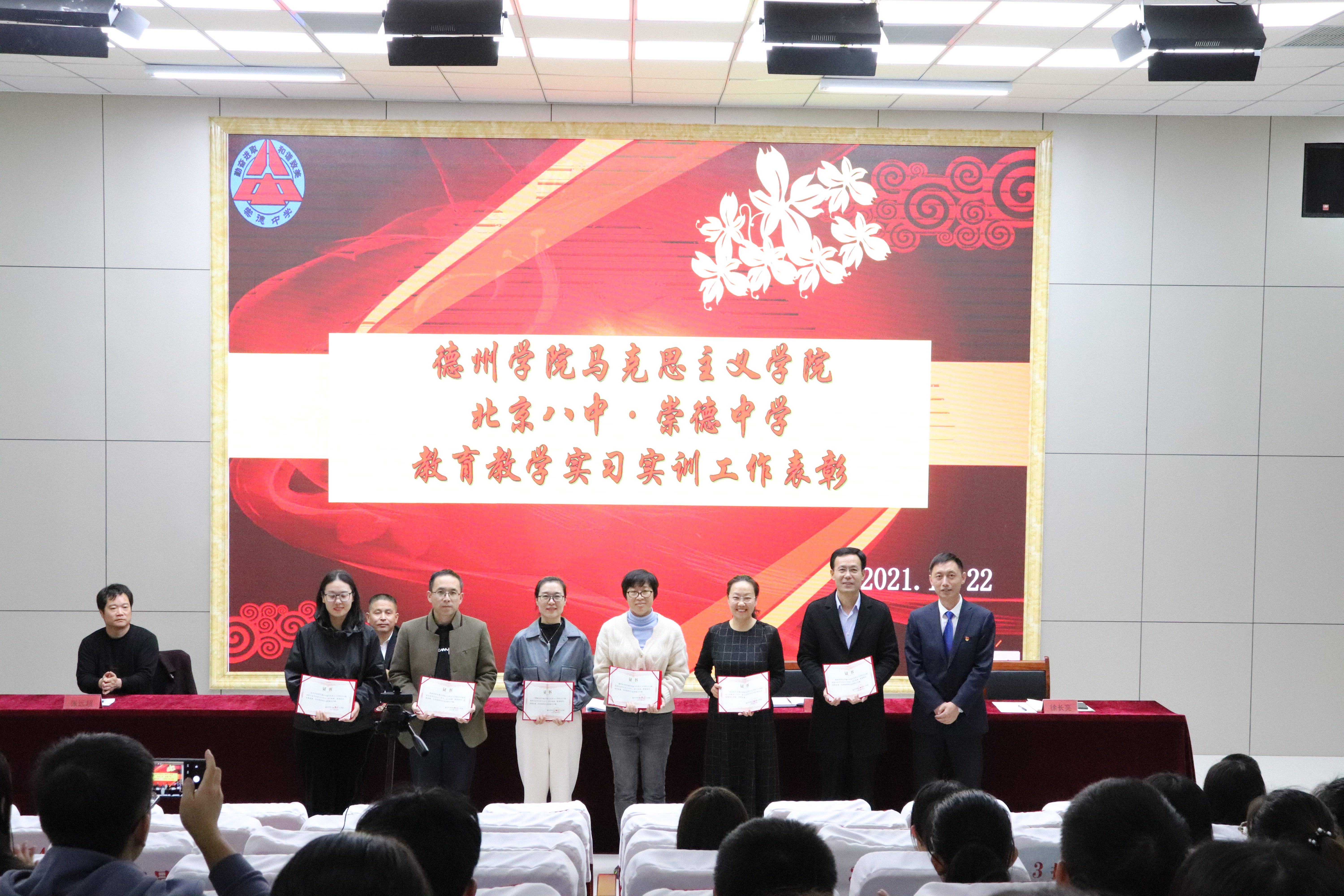为期一个月的交流活动结束后,两所学校在德州学院马克思主义学院举办了交流总结会,并为崇德中学辅导教师颁发证书。(图)