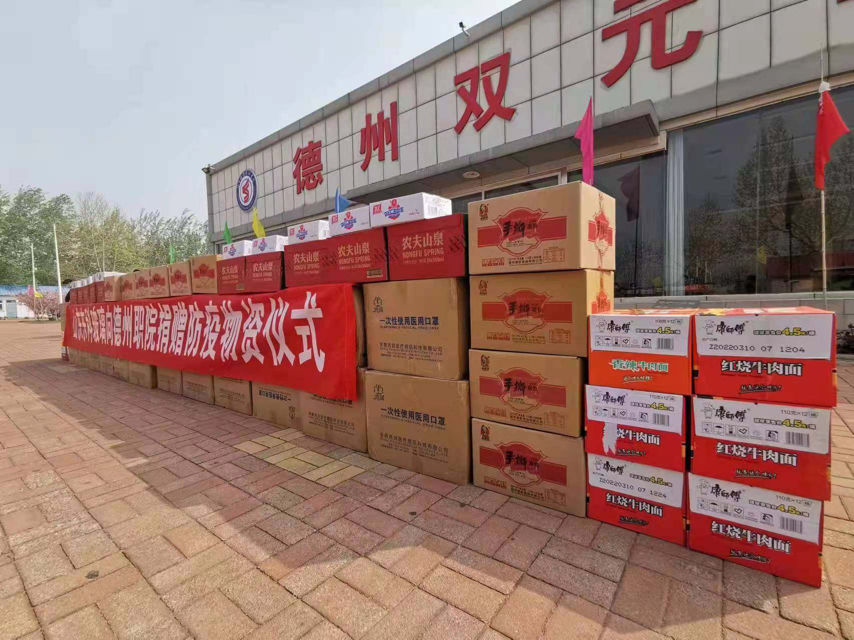 捐赠仪式上,校党委委员、副院长殷淑英表示,广大毕业生关心关注学校的疫情防控工作,在这个特殊时刻,收到毕业生捐赠的防疫物资,让学校师生倍感温暖,深受感动,这不仅仅是一次物资的捐赠,更是一次责任与爱心的传承,展现出德州职院广大毕业生的优秀品格和对母校的浓浓情意。