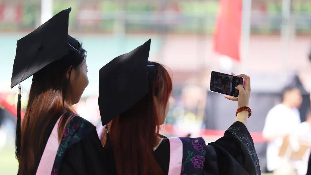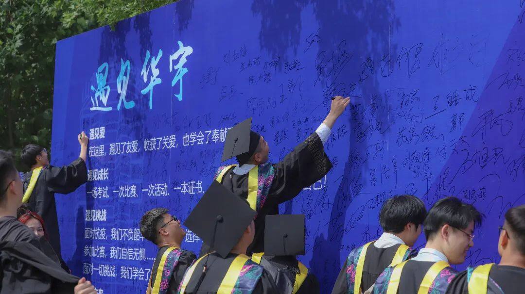 毕业典礼开始前,参加典礼的师生共同观看了2023版《华宇不再见,青春不散场》毕业纪念视频。