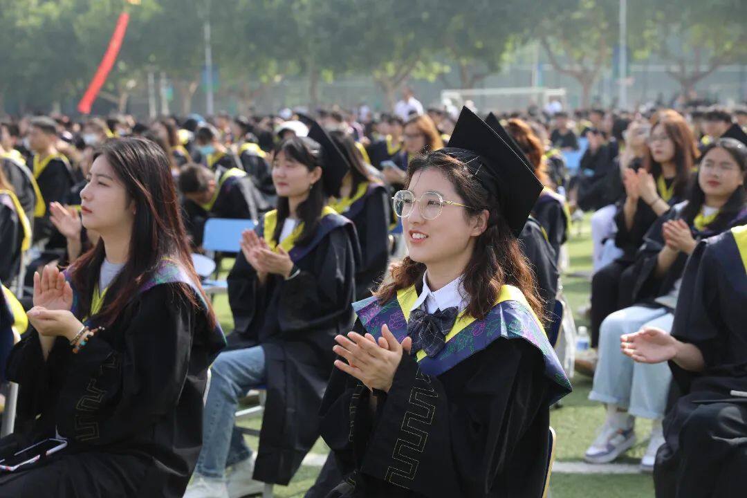 仪式结束后,伴随着《祝你一路顺风》的歌声,在场教职工目送毕业生离场。