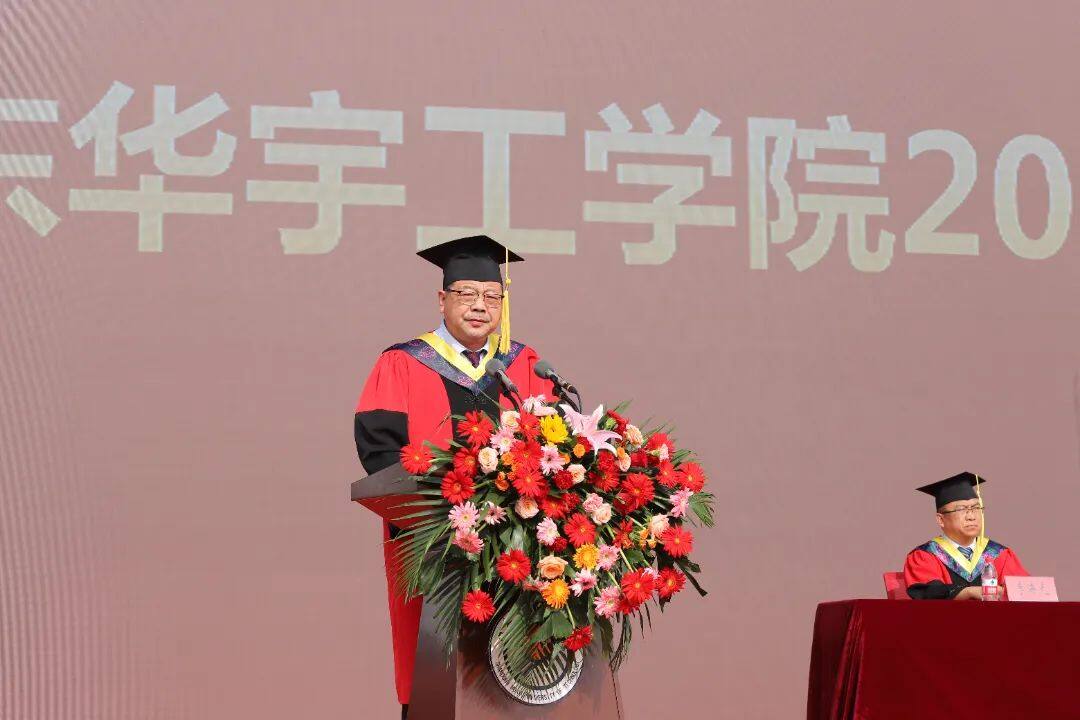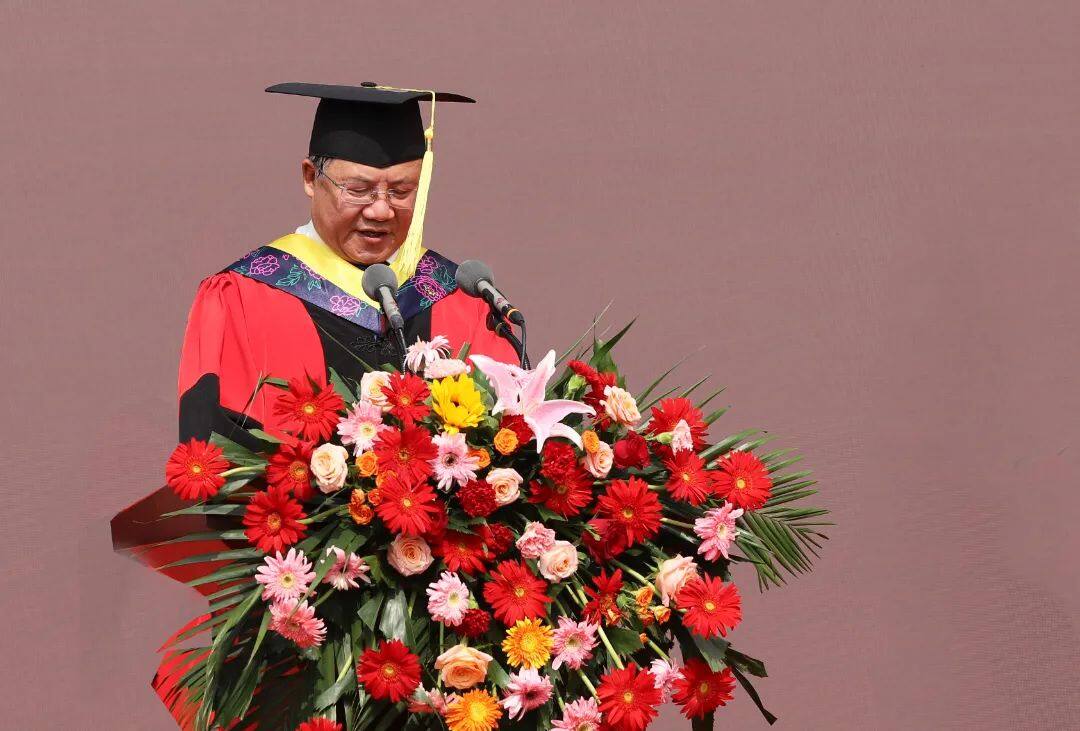 执行校长梁玉国讲话。他代表全校师生员工,祝贺2023届毕业生顺利完成学业,向倾心付出的老师们、家长们致以崇高的敬意,为即将奔赴星辰大海的同学们送上最美好的祝福!