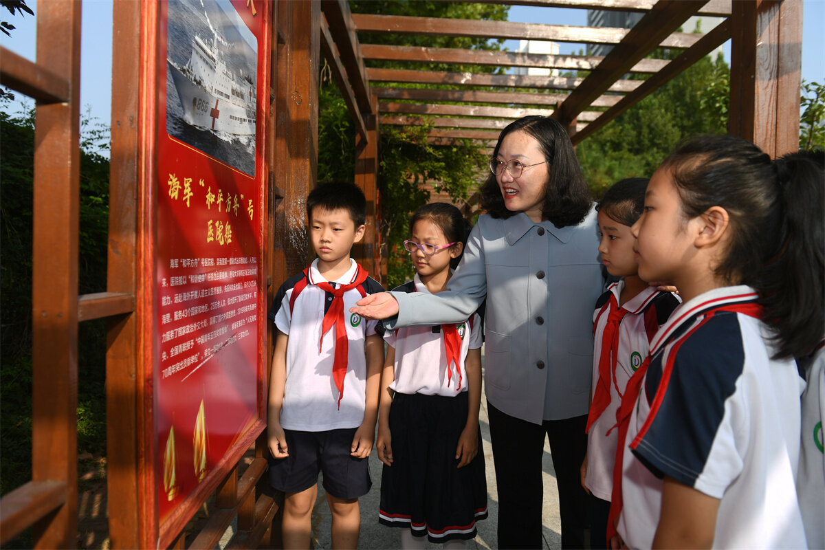 校长曹爱芹给孩子们讲解校园文化