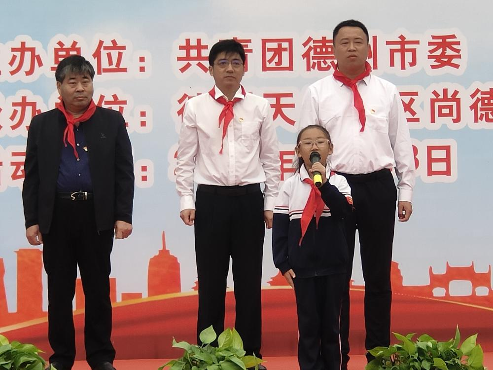 桑志强和李彦峰分别代表德州天衢新区教体卫生事业发展部和共青团德州市委向新加入的少先队员致以最热烈的祝贺,希望队员们要树立远大理想,培养优良品德,勤奋学习知识,锻炼强健体魄,培养劳动精神,争做新时代好队员。