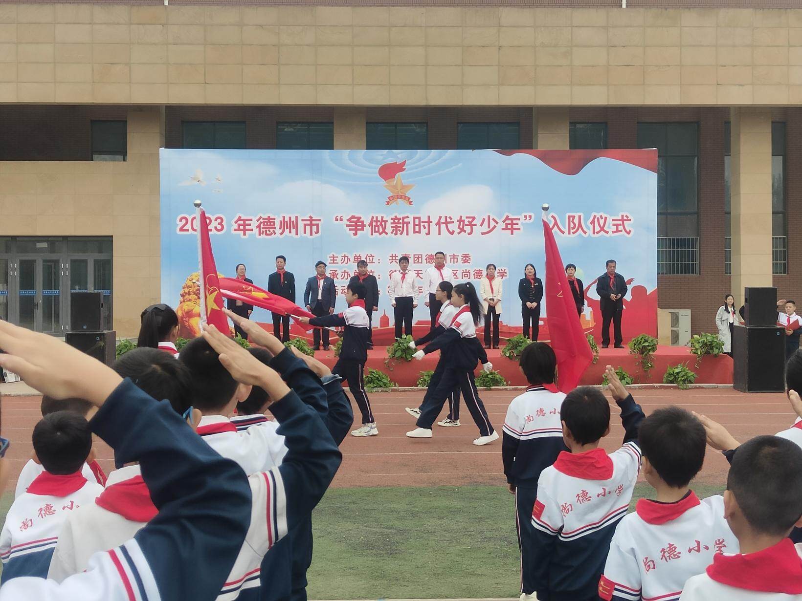 为庆祝中国少年先锋队建队74周年,教育引导广大少先队员继承和弘扬少先队光荣传统,增强光荣感和自豪感,10月13日,德州市少先队入队仪式示范仪式在天衢新区尚德小学举行。
