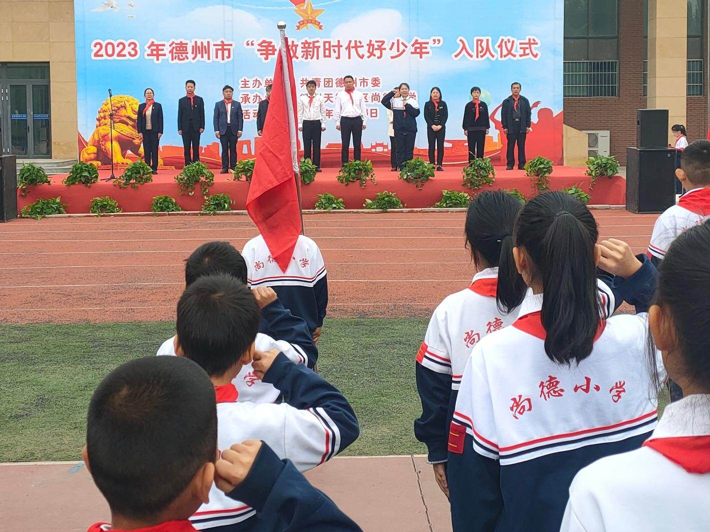 据悉,德州市团市委共选取德开小学、长河小学、北园小学、沙王小学、学院附小、尚德小学六所学校举行少年队入队示范仪式。作为示范点之一,尚德小学共有244名新队员加入少先队。