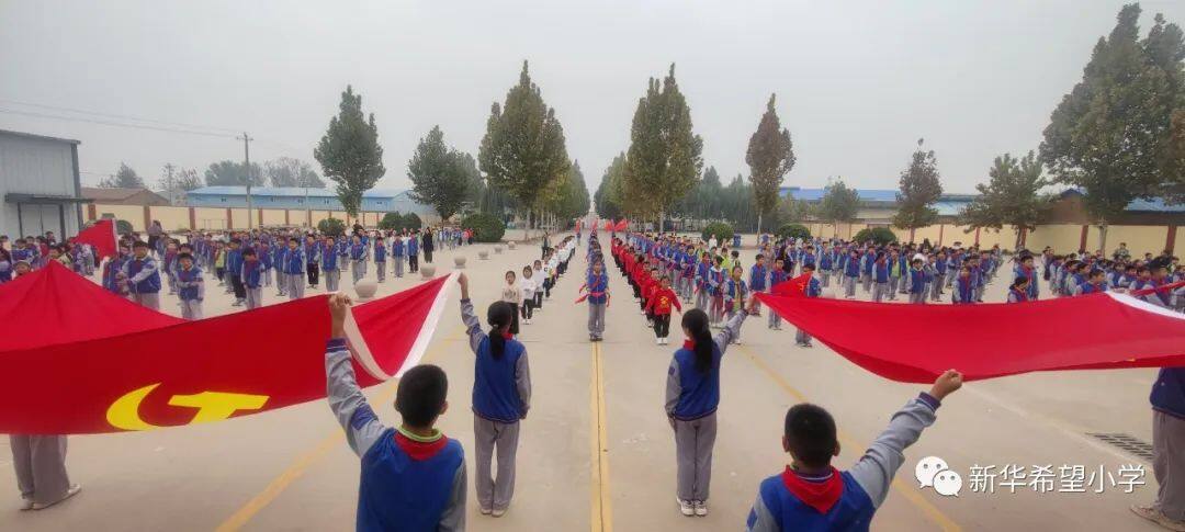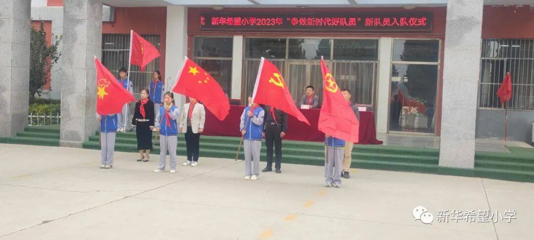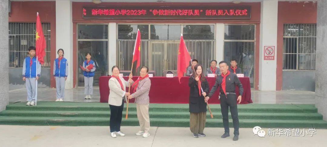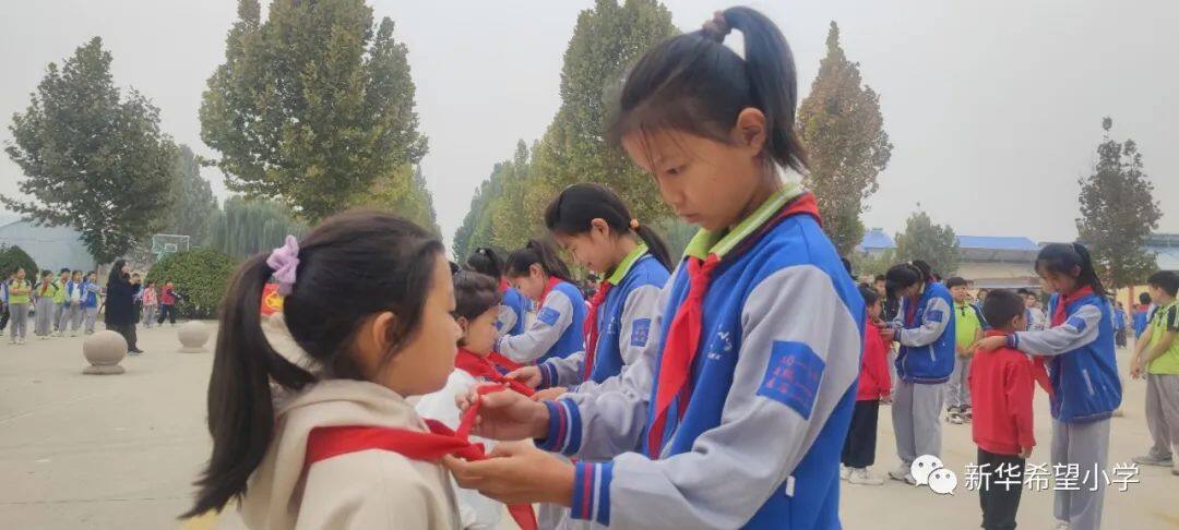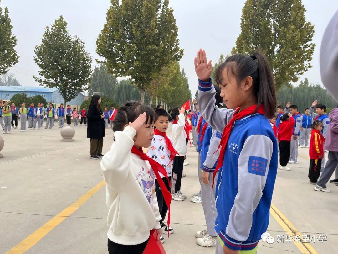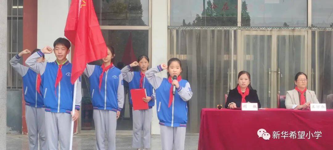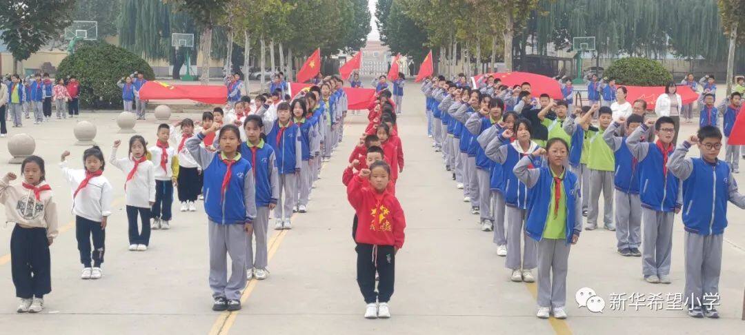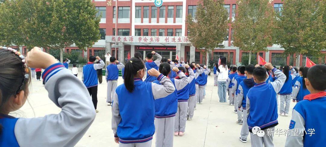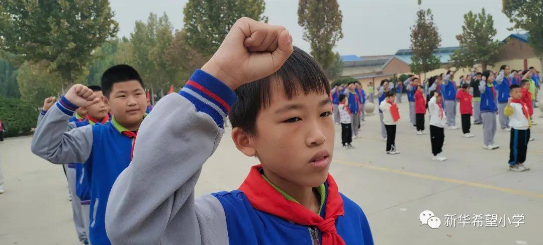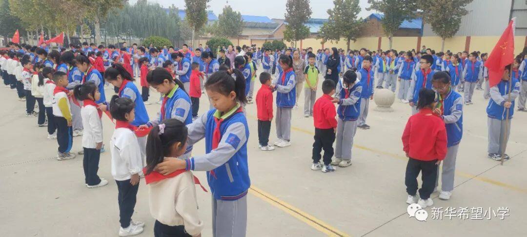 在少先队建队日来临之际,新华希望小学开展了“争做新时代好队员——庆祝少先队建队74周年暨新队员入队仪式”活动。30名新队员为少先队注入了新活力,全体老队员参与活动,预示着我校少先队事业薪火相传、生生不息。