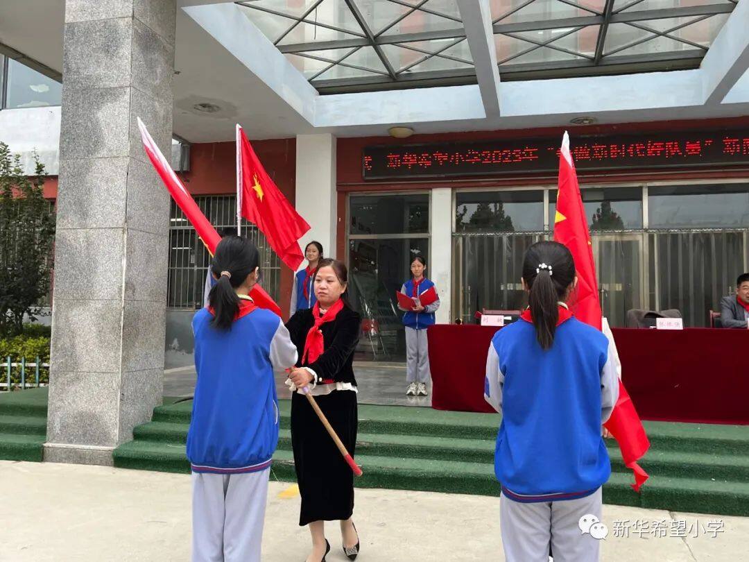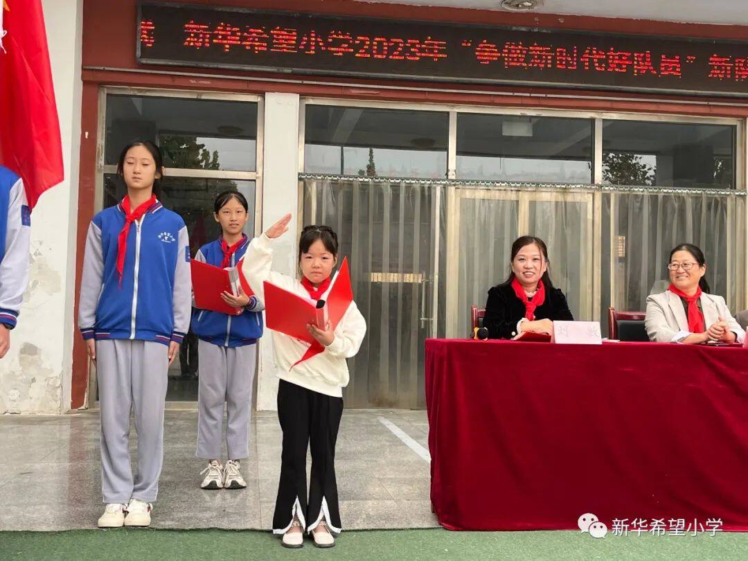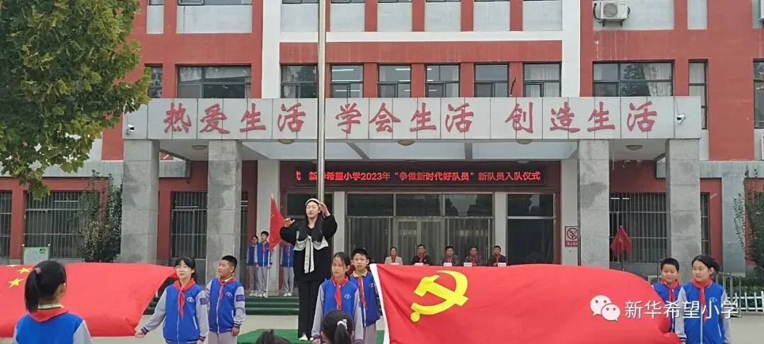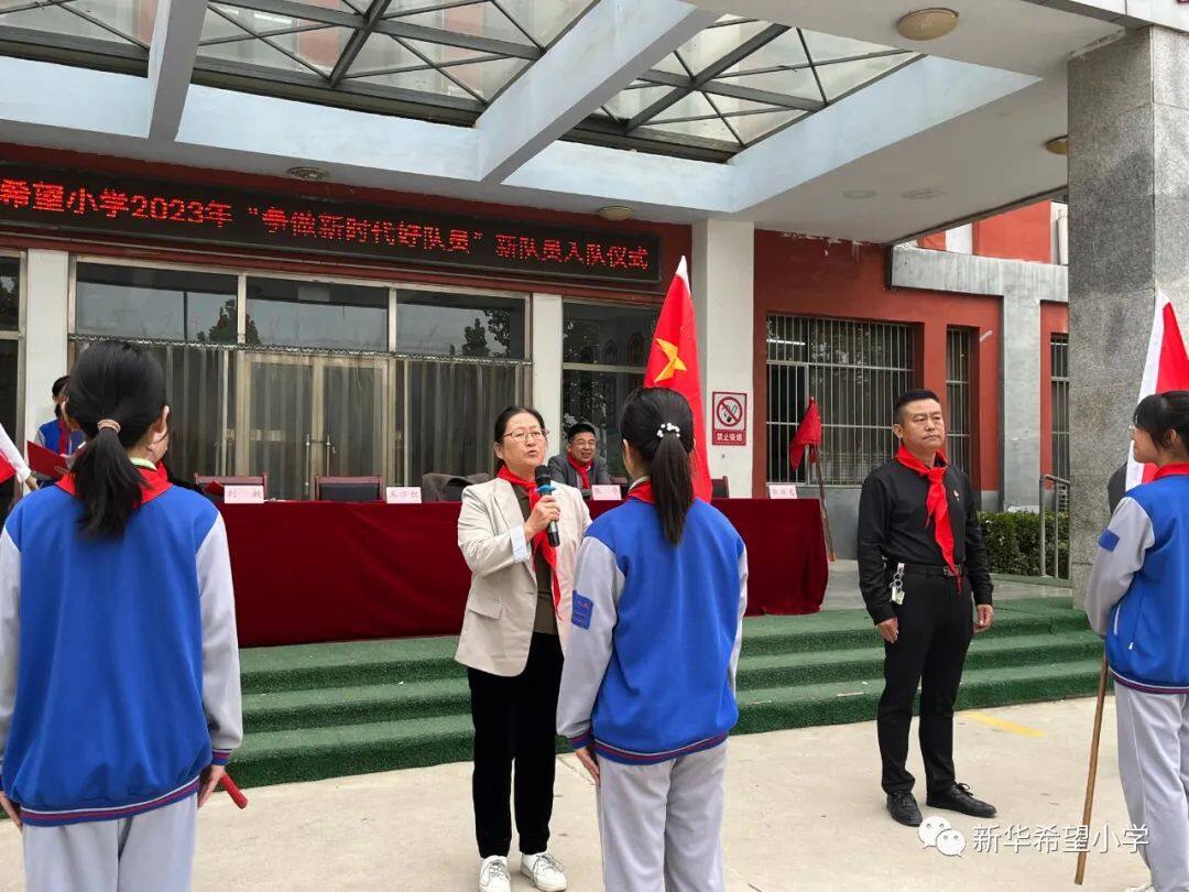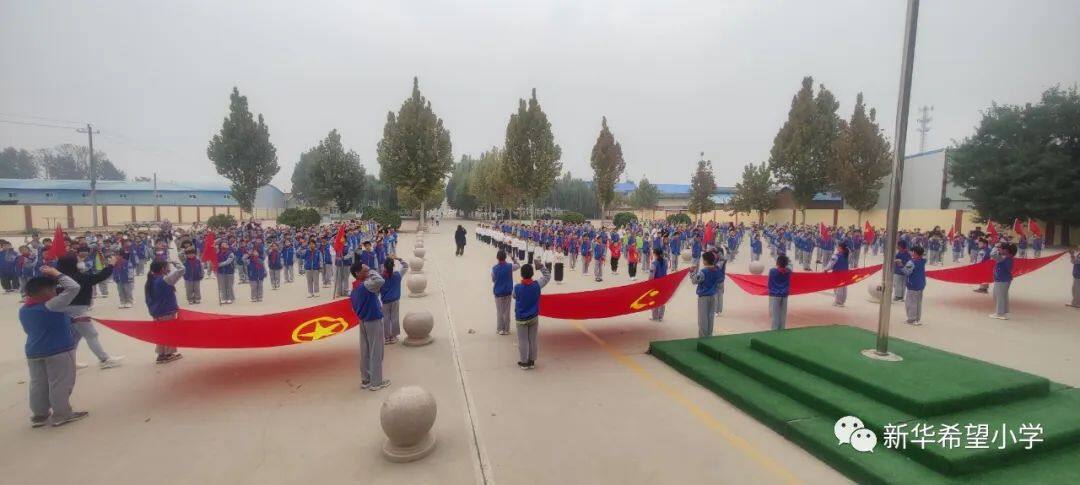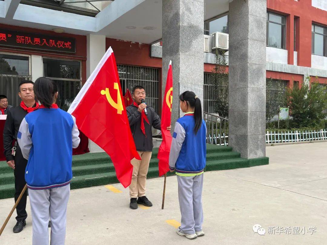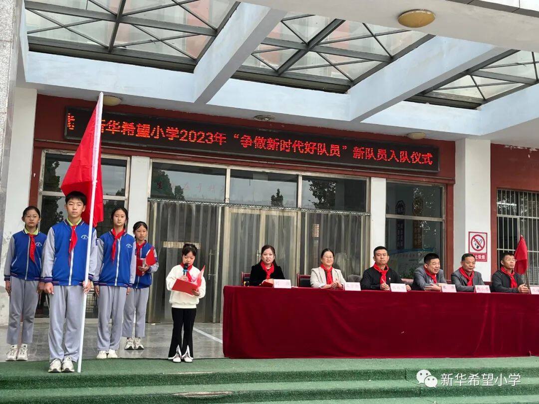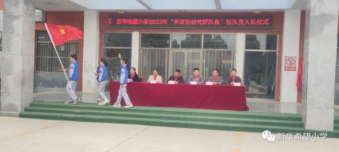 在少先队建队日来临之际,新华希望小学开展了“争做新时代好队员——庆祝少先队建队74周年暨新队员入队仪式”活动。30名新队员为少先队注入了新活力,全体老队员参与活动,预示着我校少先队事业薪火相传、生生不息。