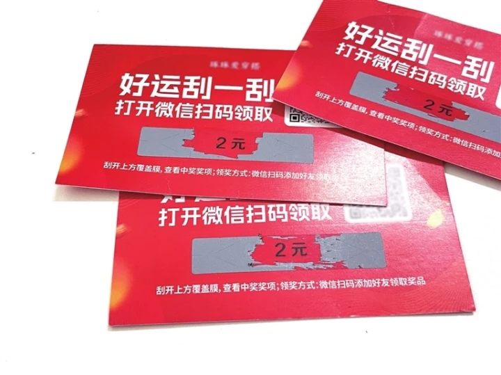 当天,市民韩女士收到3个快递,打开包裹发现有3张“兑奖卡片”,刮开均是2元。她按照要求微信扫描二维码,添加商家微信后,对方要求关注指定视频号,截图发送给客服领取奖品。“卡片内容只是换了个说法,其实还是商家向消费者要好评。”韩女士说。