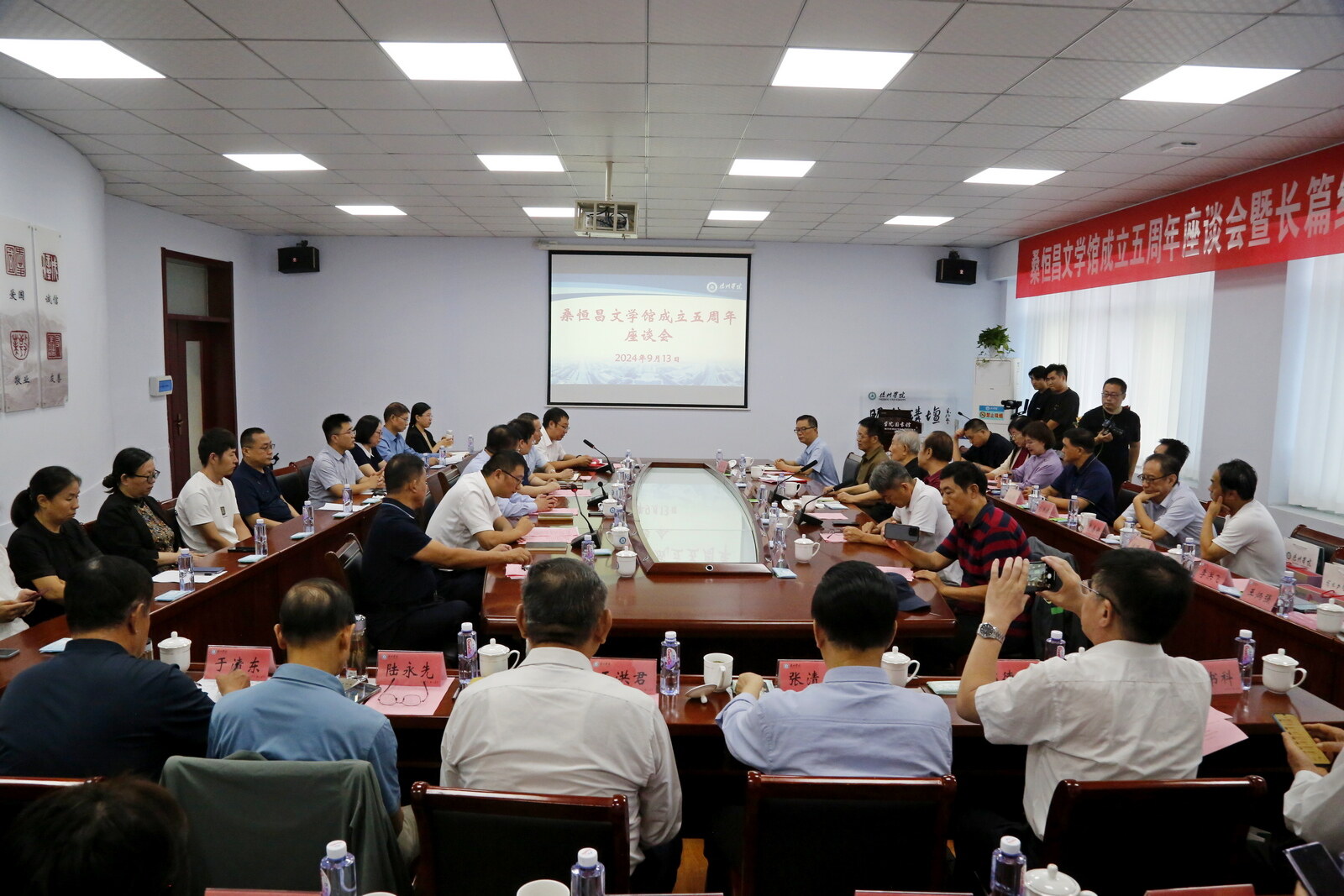 9月13日上午,德州学院桑恒昌文学馆成立五周年座谈会在桑恒昌文学馆举行。校党委副书记、校长赵长林,校党委委员、宣传部部长冯琨,当代著名诗人桑恒昌,山东大学教授、著名诗人、评论家耿建华,山东省写作学会会长韩品玉,山东省文艺界相关人士及德州诗词协会会员代表参加座谈会。