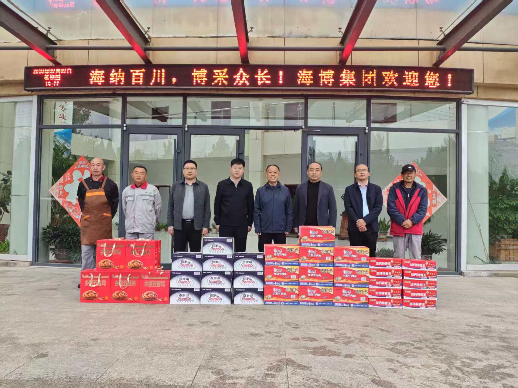 作为工会重点联系的农业产业化企业,山东海博农牧科技有限公司是粮食产业链稳定的“关键一环”。调研中,王建岐与企业负责人深入沟通,重点了解粮食收购量、饲料加工进度,以及一线职工的工作强度与需求。在肯定企业助农抢收贡献的同时,县总工会为坚守岗位的职工送上价值2000余元的“暖心礼包”,内含方便面、火腿肠、扒鸡、矿泉水等生活物资,且明确定向发放至秋粮加工一线职工手中,让关怀直抵一线工作人员。