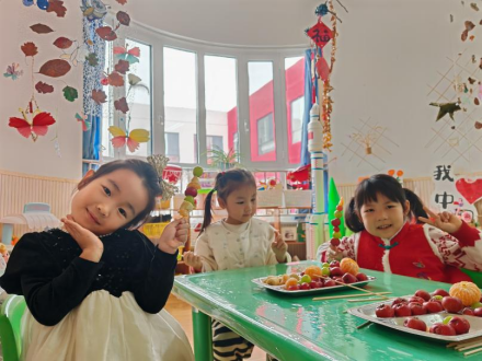 随后,家长志愿者展示 “熬糖绝技”。金黄糖浆在锅中泛起晶莹光泽,甜香四溢。孩子们围在旁好奇观察,不时发出惊叹。待糖浆裹满山楂串,冷却后形成剔透糖壳,酸甜可口的糖葫芦便完成了。孩子们咬下一口,幸福滋味溢满心间:“自己做的糖葫芦最甜!”