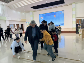 活动在充满活力的“冬眠动物筑窝记”中拉开帷幕。孩子们化身“动物建筑师”,手拿炭烧积木作为“魔法建材”,跟随着欢快的音乐节奏,灵巧地跳过竹竿阵。随后,家长们加入挑战,与孩子手拉手,共同完成接力。最终,亲子家庭通力合作,将一块块积木搭建成了造型各异、坚固温暖的“动物冬房”。现场气氛热烈,加油声、欢笑声此起彼伏。这个环节不仅锻炼了幼儿的节奏感、身体协调性和勇气,更在亲子默契的配合中,让孩子们深刻理解了守护与关怀的意义。