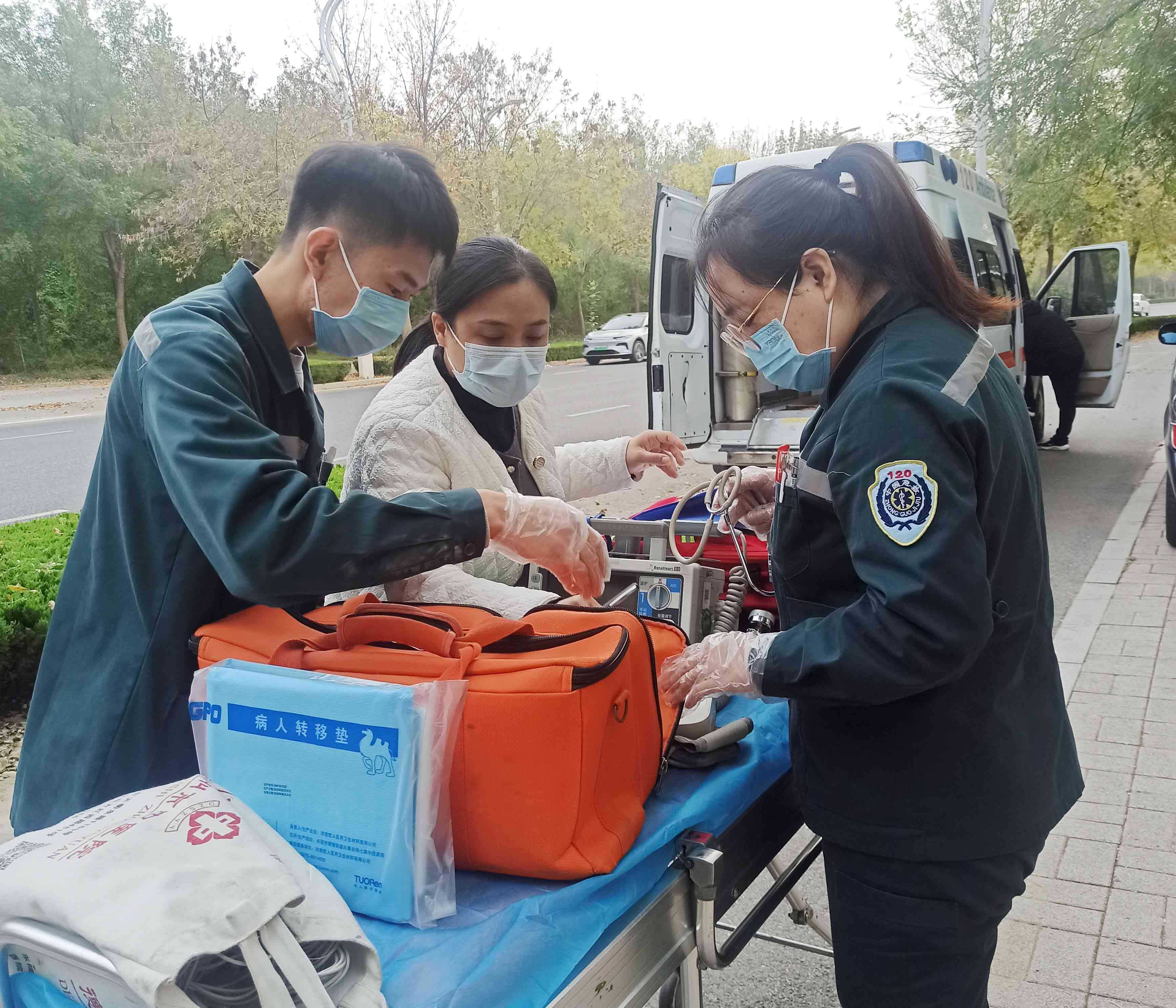 演练以实景模拟为载体,全维度检验急救队伍的突发响应、协同作战与专业救治能力。现场,各急救站闻令即动、出车高效,远程急救指导精准落地,随车物资保障完备。面对模拟车祸外伤、各类突发急症等场景,急救人员救治流程清晰、操作规范,在急救环节展现出扎实的专业素养与处置能力。