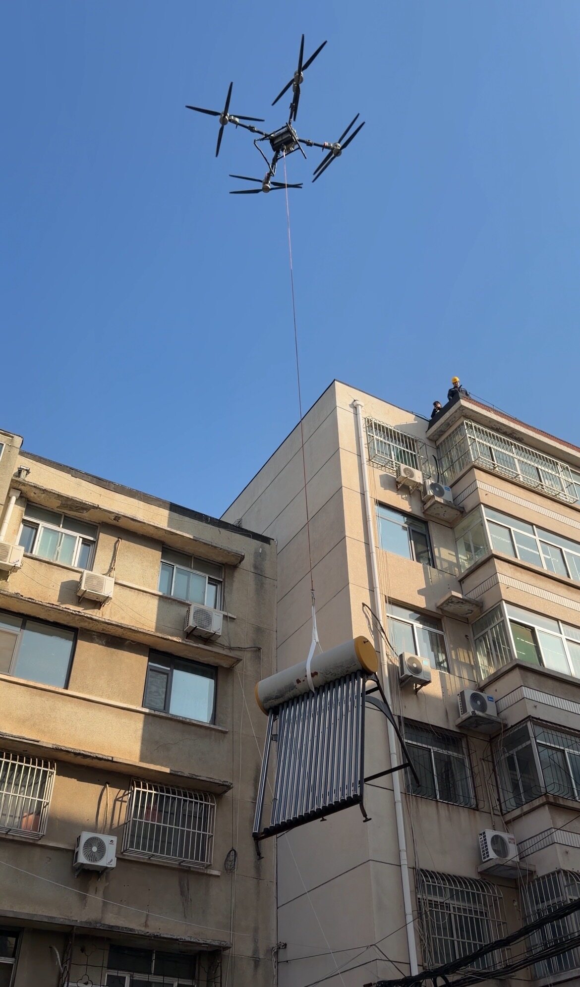 “起吊!”随着操作员指令,一架无人机稳稳吊起楼顶废弃太阳能热水器,精准降落至地面安全区域,全程仅用3分钟。11月14日,德城区新湖街道尉署社区启动“楼顶安全守护计划”,创新采用无人机技术集中拆除废旧太阳能设备,为居民消除“头顶隐患”。