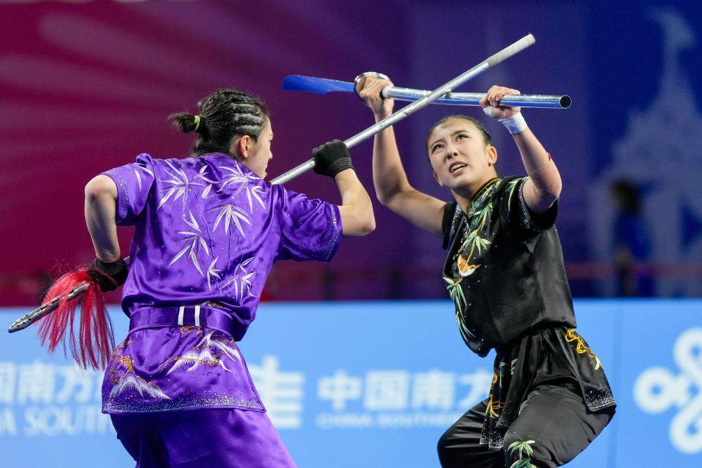 二人器械对练冠军于文珂于2017年进入青岛体校武术套路队,经系统训练,在2022年获得第二十五届省运会第三名。同年,于文珂进入山东省队集训,近年来,曾多次拿下武术套路全国冠军。赛场上的于文珂身法灵动、刚柔并济,一招一式尽显武术套路的刚健之美与韵律之妙,无论是单人技术展示还是团队协同配合,都展现出高超的竞技水平和良好的精神风貌。