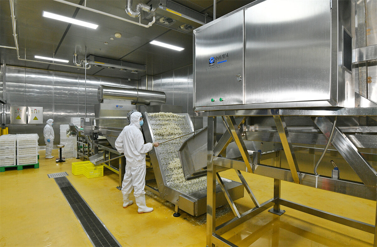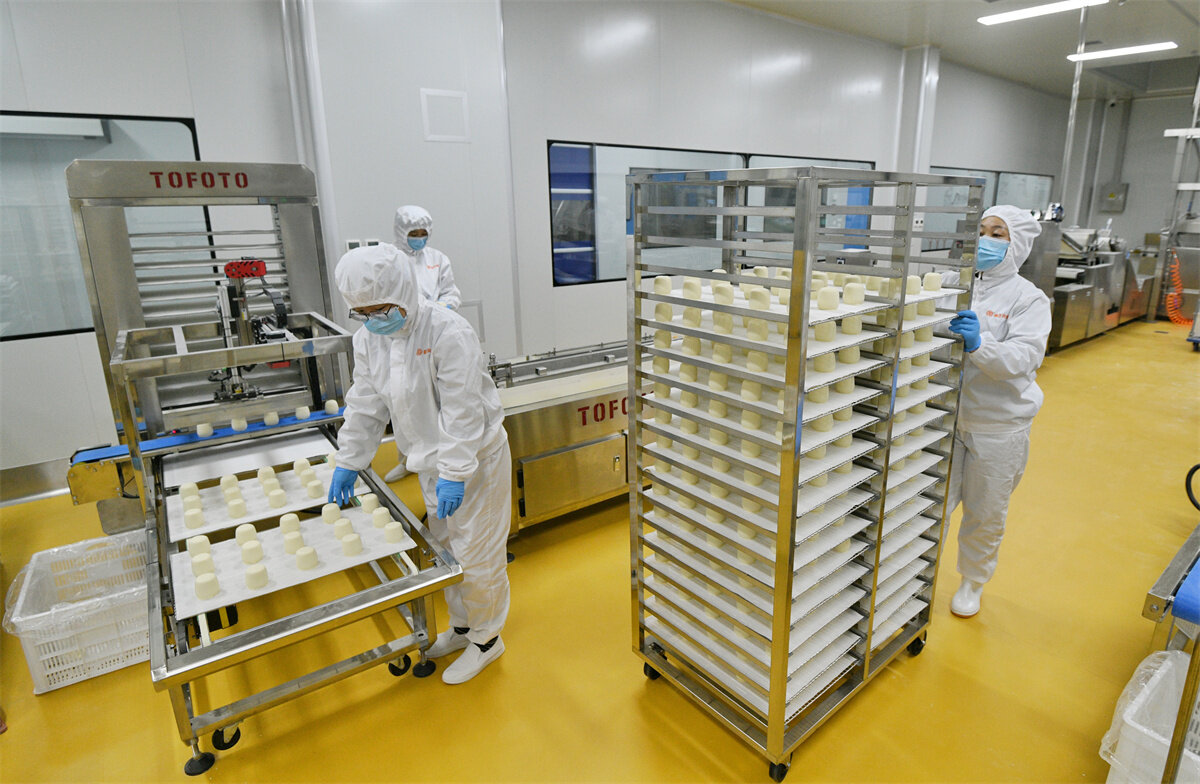 各车间各司其职,生产工作有序推进。走进豆芽车间,自动化系统定时喷淋。车间坚守“无添加”原则,坚决拒绝催熟剂与漂白剂,甄选优质豆种充分浸泡后,在恒温环境中自然培育,鲜嫩豆芽便可采收。成品经第三方检测机构检测,农药残留、重金属含量均为零。