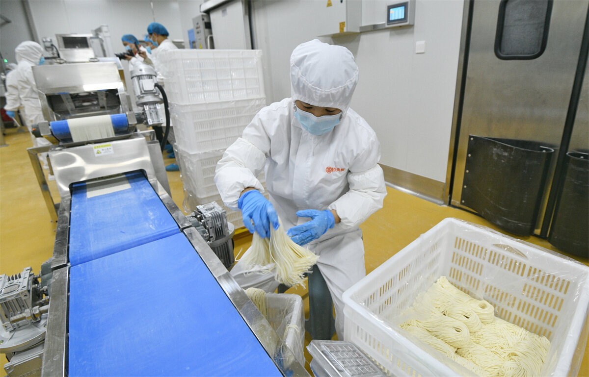 面条则用高筋小麦粉搭配纯净水与少量食盐,自动化控制水分比例和面,恒温醒面后经多道梯度压延,切分不同宽度与颜色,确保成品久煮不烂、劲道爽滑。