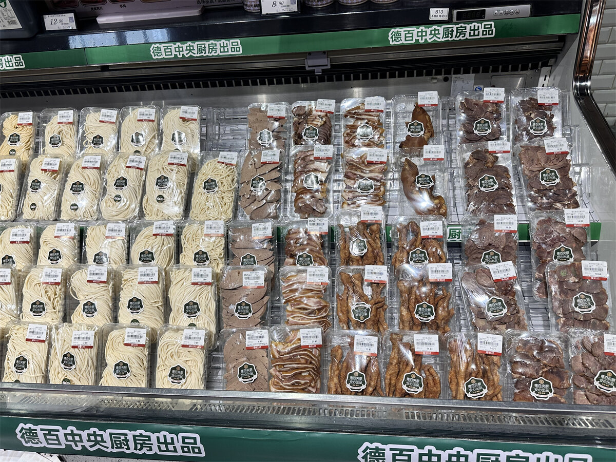 德州晚报全媒体讯 在澳德乐时代广场负一层,标注着“德百中央厨房出品”的专柜前客流不断。市民手中挑选的馒头、面条,熟食区的猪蹄、鸡爪,还有蔬菜区的豆芽,均源自11月10日正式投产的德百中央厨房。这座坐落于德城区黄河涯镇德百陆地港物流园区的“民生食材中枢”,以自营全链条模式为全市德百商超稳定供货,让新鲜与安心触手可及。