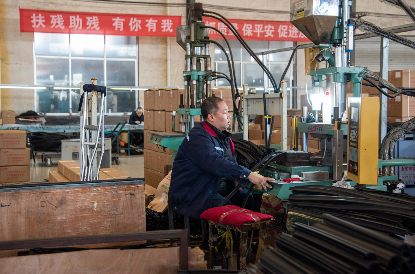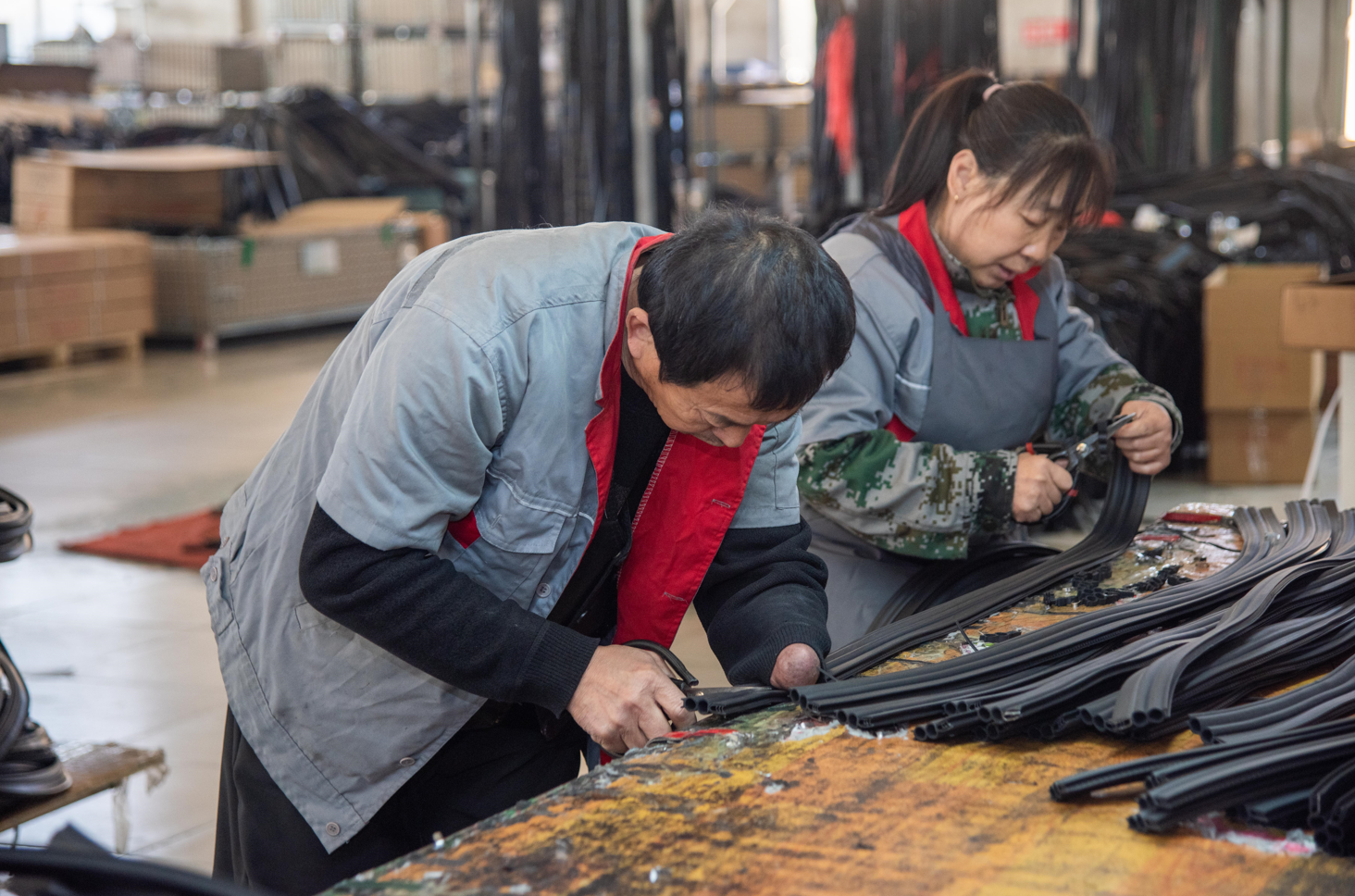 “这名拄着双拐的工人是王玉锡,他负责胶条注角;这名员工是霍怡春,别看他手部残疾,但干起活来很利索;这是张洪亮,也负责包装工序……”在公司办公室主任王凤霞的“词典”里,每一位残疾员工的名字、身体情况和工作岗位都记得清清楚楚。这位从一线工人成长起来的管理者,曾负责残疾员工上岗前的培训。面对交流难度最大的听障员工,她与同事们自创了一套内部沟通手势。比如,双手比出“OK”放在眼前,代表“去找戴眼镜的王主任”。这些充满善意的“暗号”,成为车间里温暖的桥梁。