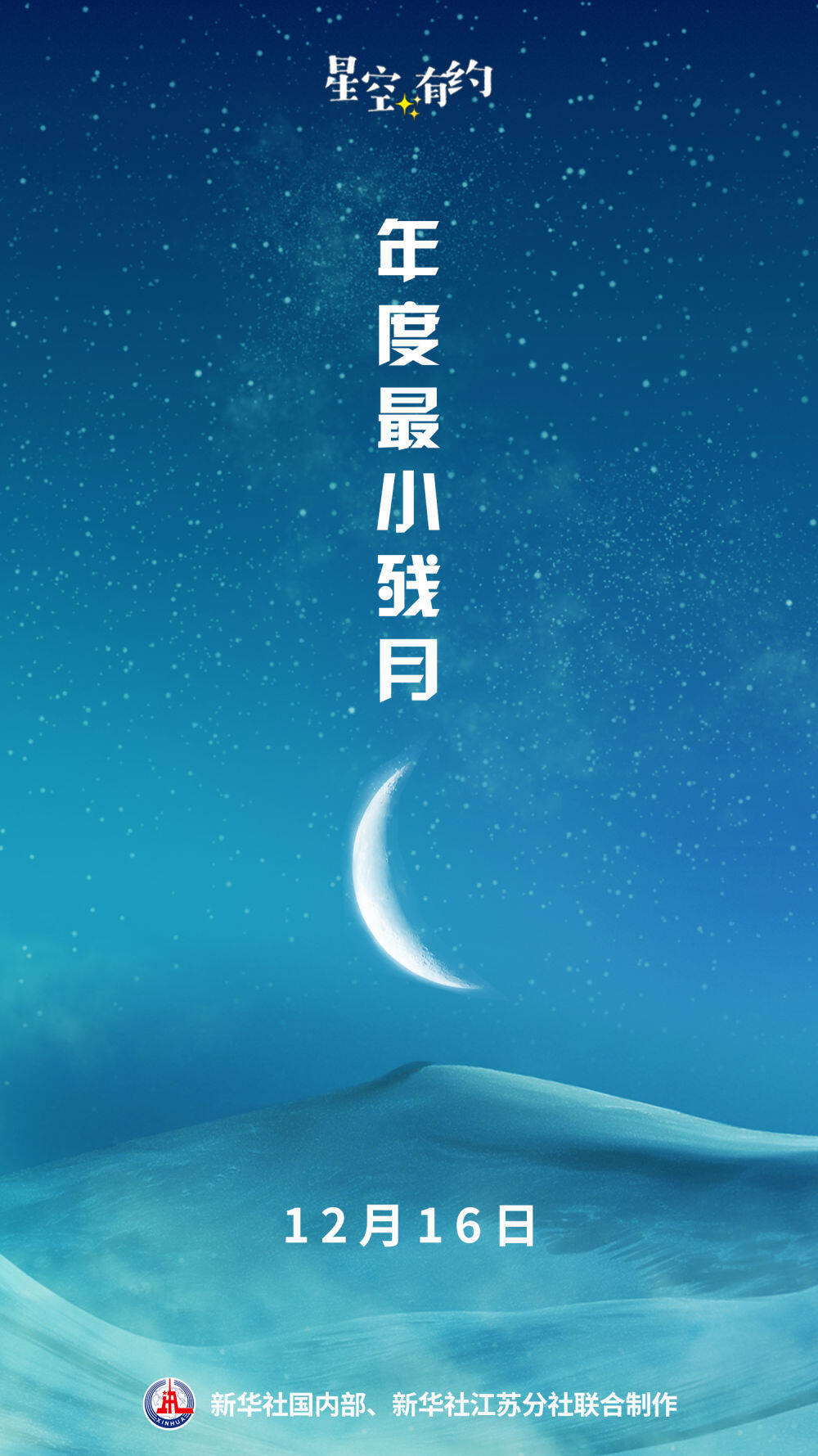 12月16日将迎来本年度最小残月,届时,月球位于轨道远地点附近,人们看到的月亮像是一弯纤细的银钩。(查看更多)