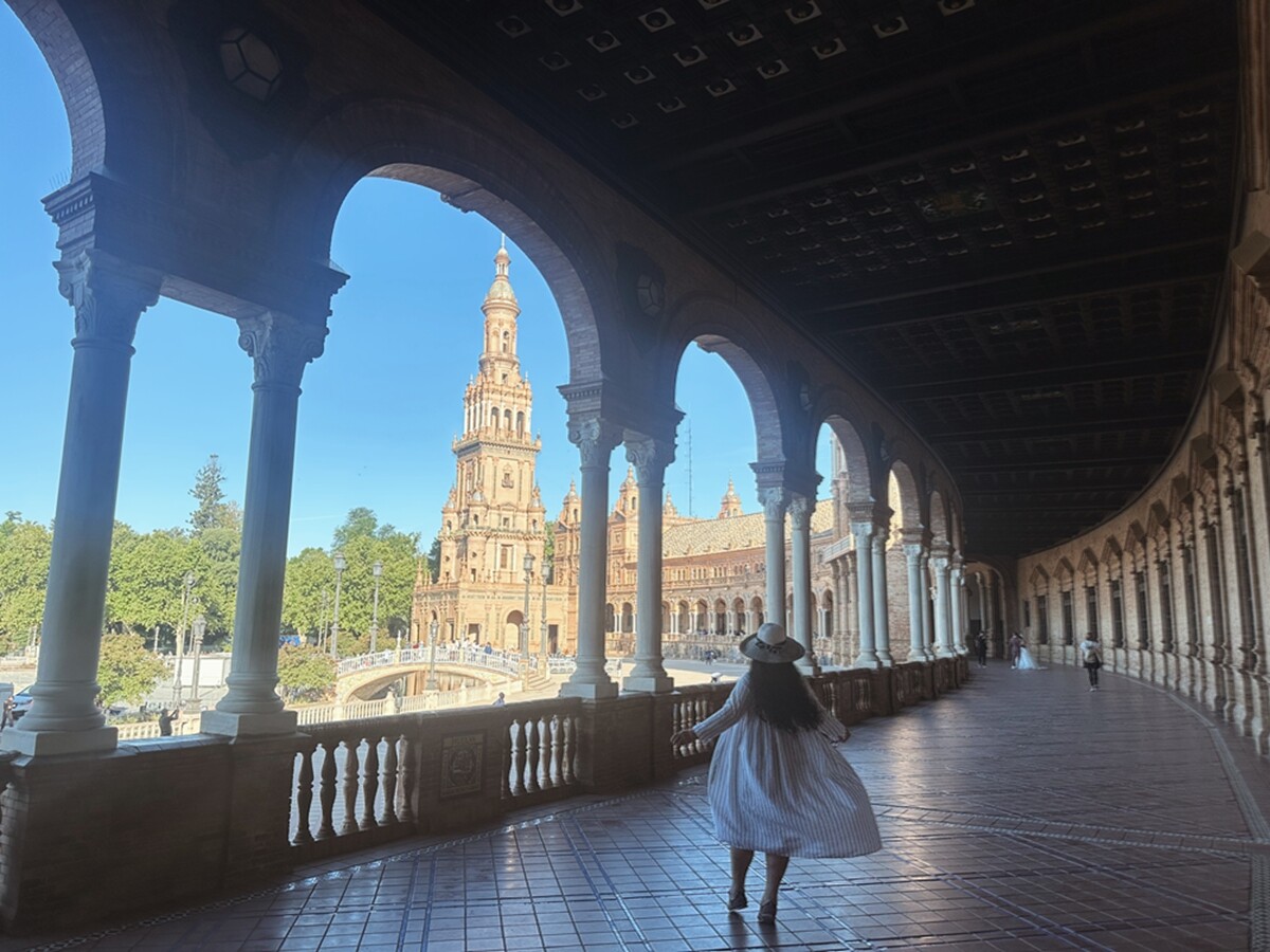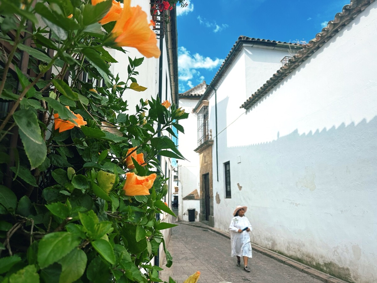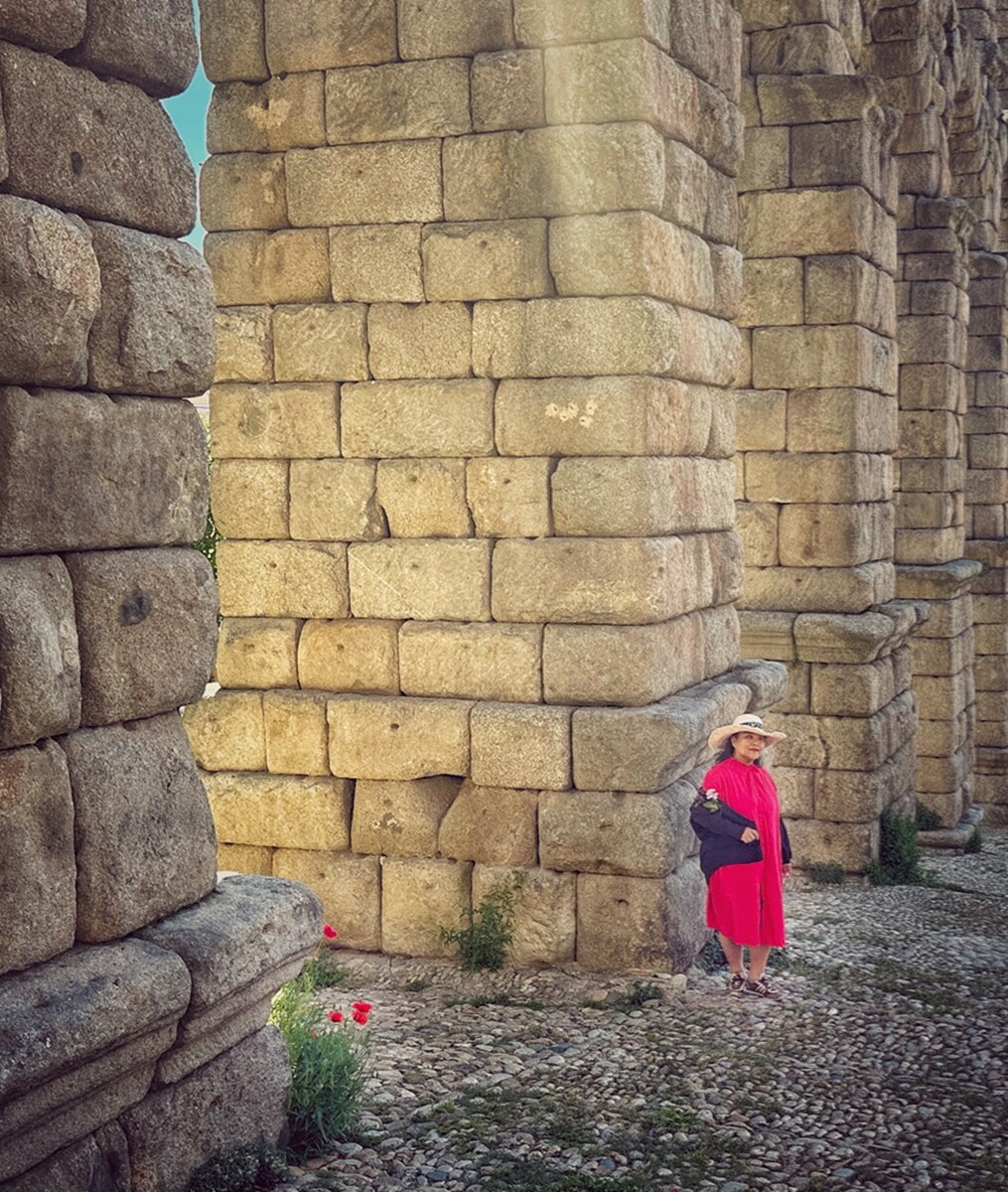 ▲西班牙 塞戈维亚古罗马水渠下的一点红
