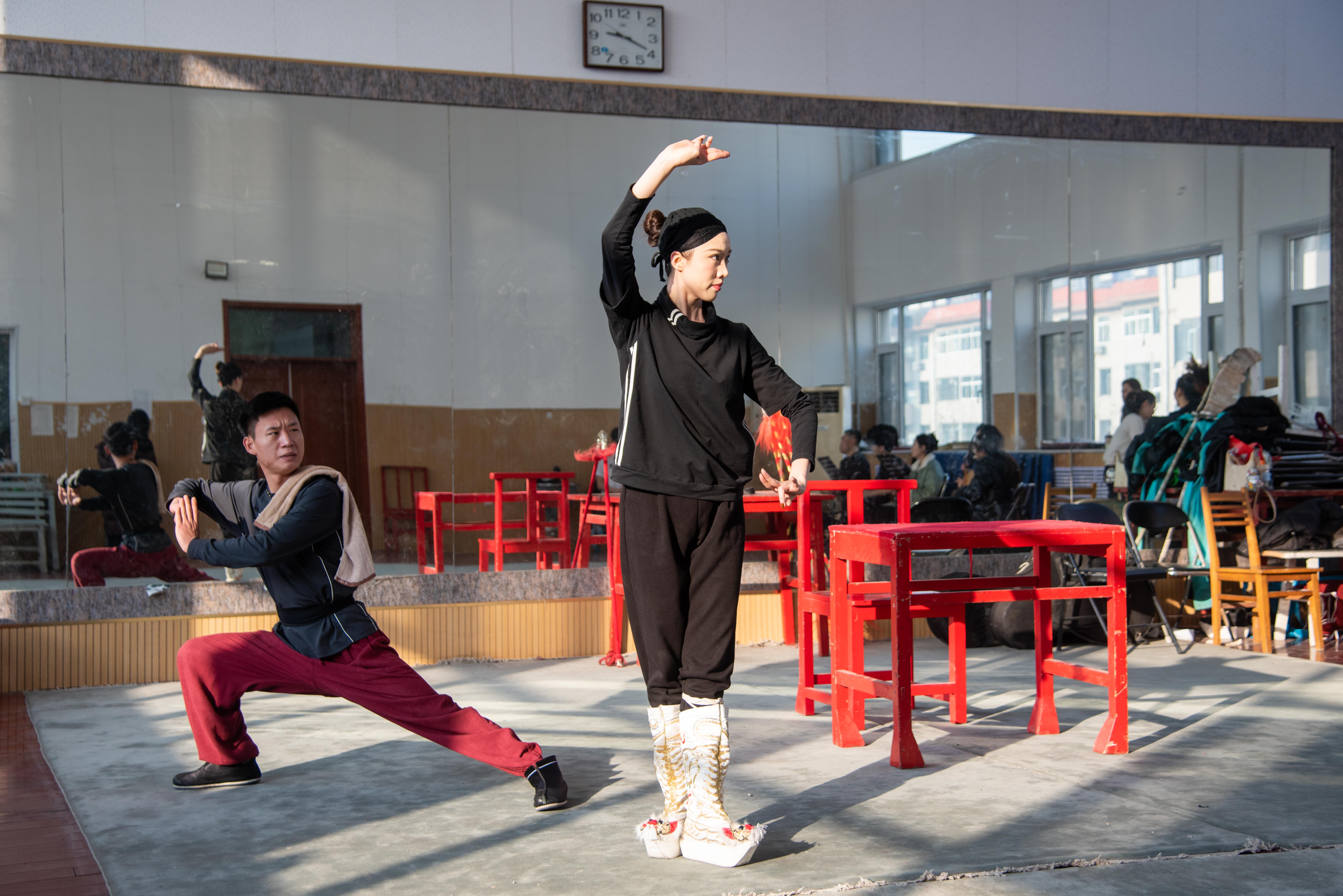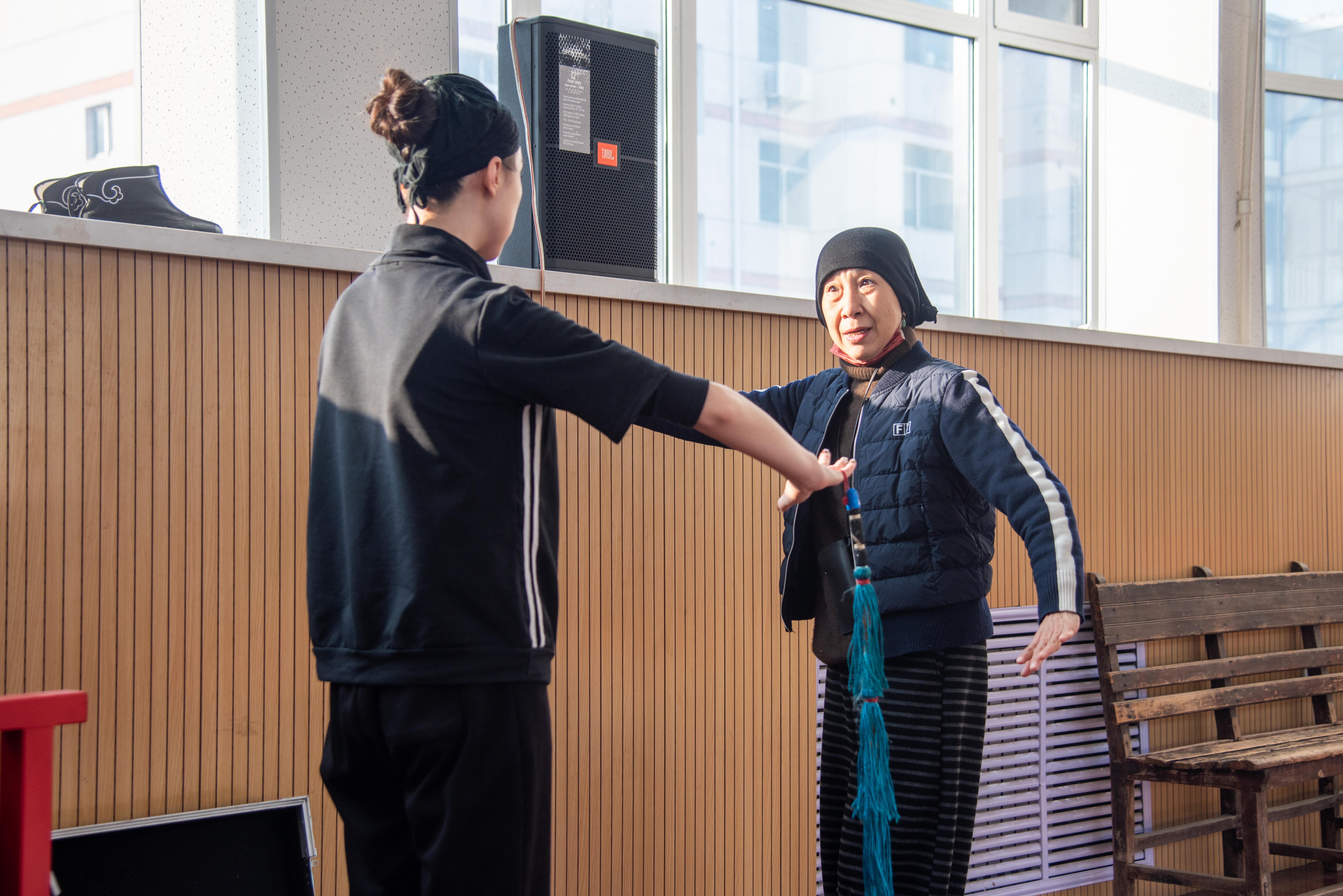 2014年前后,舞台经验丰富的张贺芳扛起培养青年演员的重任,这一教便是十余年。“拳不离手、曲不离口是硬道理”,这是她对后辈说得最多的话。她延续老一辈的严苛作风:踢枪角度有偏差便亲自示范纠正,念白节奏不准就逐字逐句带练,身段缺乏韵味就拆解动作、点拨精髓。