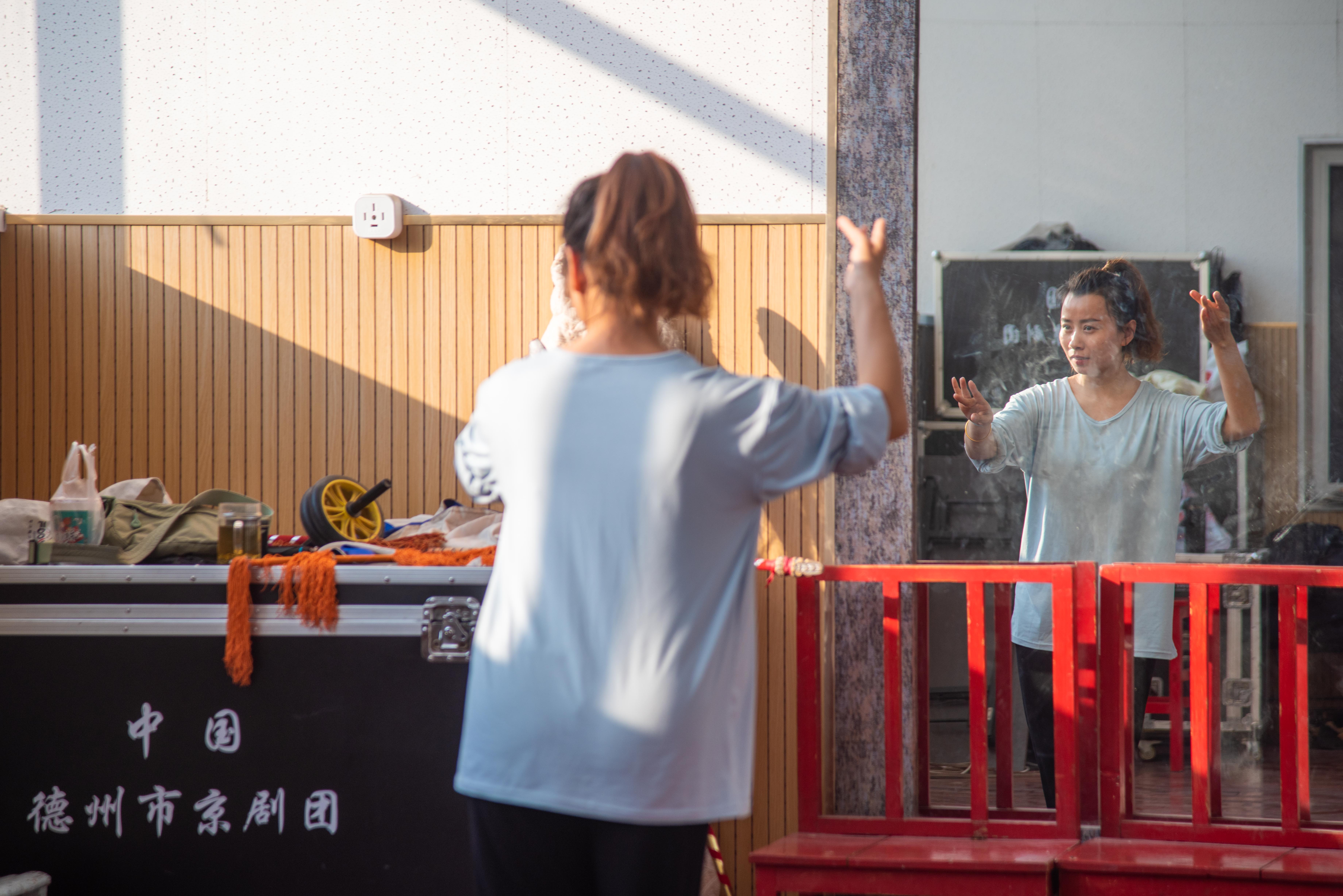 德州市京剧团的排练厅里,京胡悠扬,唱腔清亮。演员们身着练功服加紧打磨节目,正在为下乡惠民演出和春节晚会冲刺。人群中,一级演员张贺芳头发微霜,时而扶正年轻演员身段,时而示范踢枪绝技,眼神专注热忱。六十载热爱与坚守,她在方寸戏台上书写着京剧传承的动人故事。