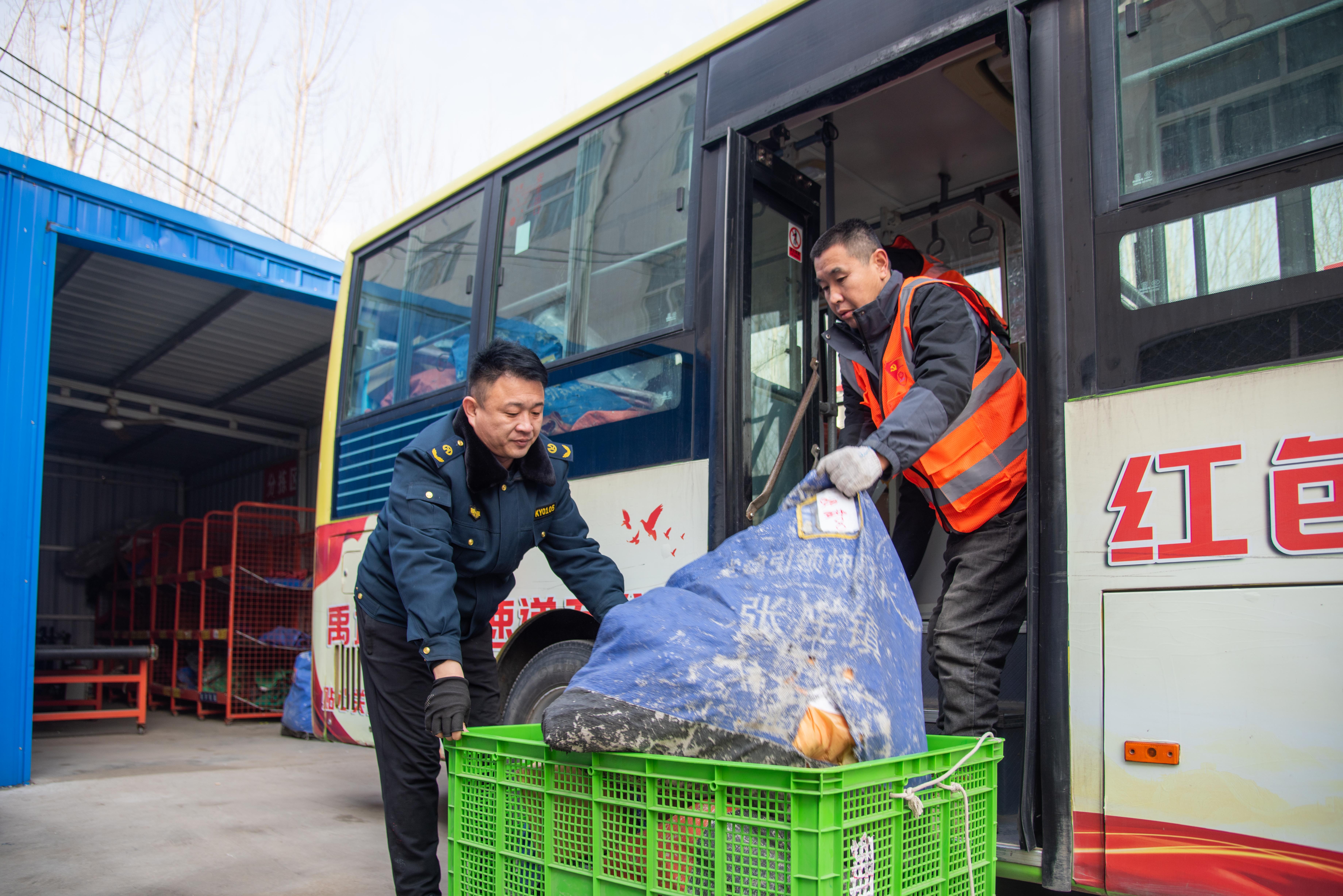 61路公交车是其中之一,每日往返于客运中心与丁寺站,途经禹兴街道、安仁镇、辛寨镇、莒镇等19个站点。12月16日上午9点,司机张雪像往常一样检查车况、打扫车辆,做好发车准备。随后,市电商快递物流共同配送中心的分拣人员将当天需配送的快件搬运上车。