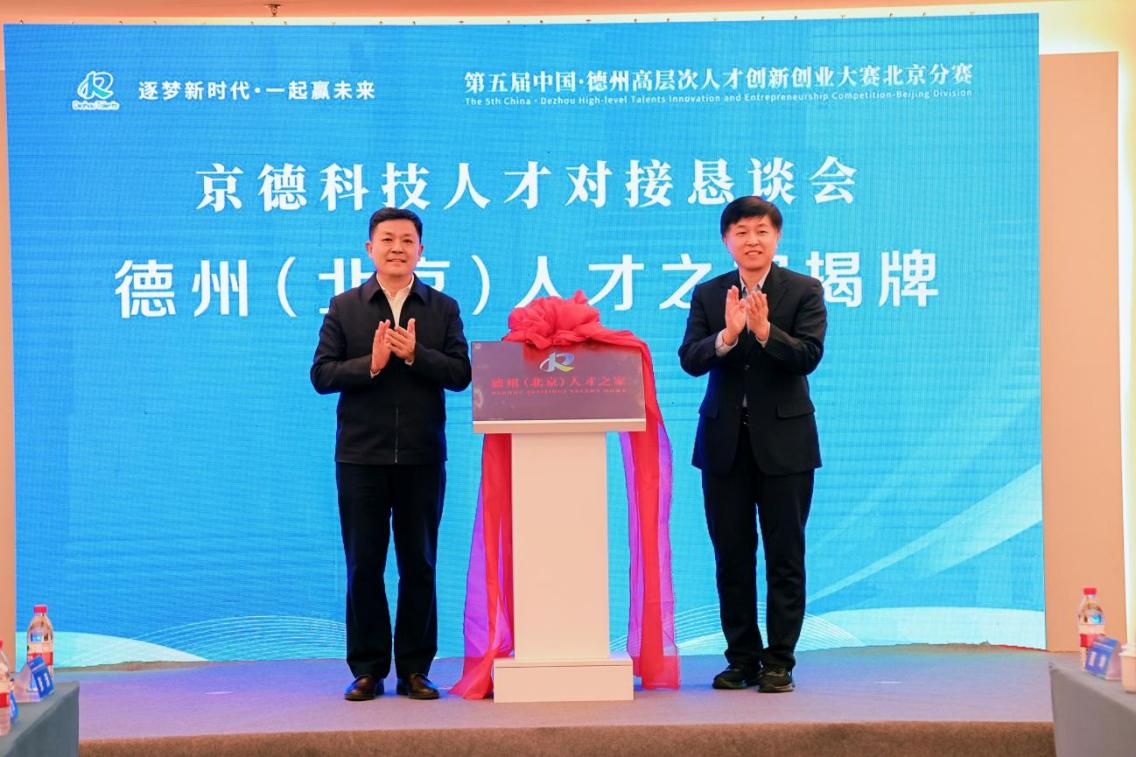 大赛期间,同步举办京德科技人才对接恳谈会,王玉鹏、才玉璞、张诚同志出席,邀请近20名在京德州籍专家人才、企业家座谈交流,搭建在外人才与家乡沟通合作平台,听取对家乡发展的意见建议,会上揭牌成立德州(北京)人才之家,为专家人才代表颁发“德州市招商引才特聘顾问”和“德州市标志性产业链特聘专家”聘书。禹城市举办在京禹城籍高层次人才座谈会,宁津县、夏津县分别赴北京市农林科学院、中国农业大学实地考察对接。