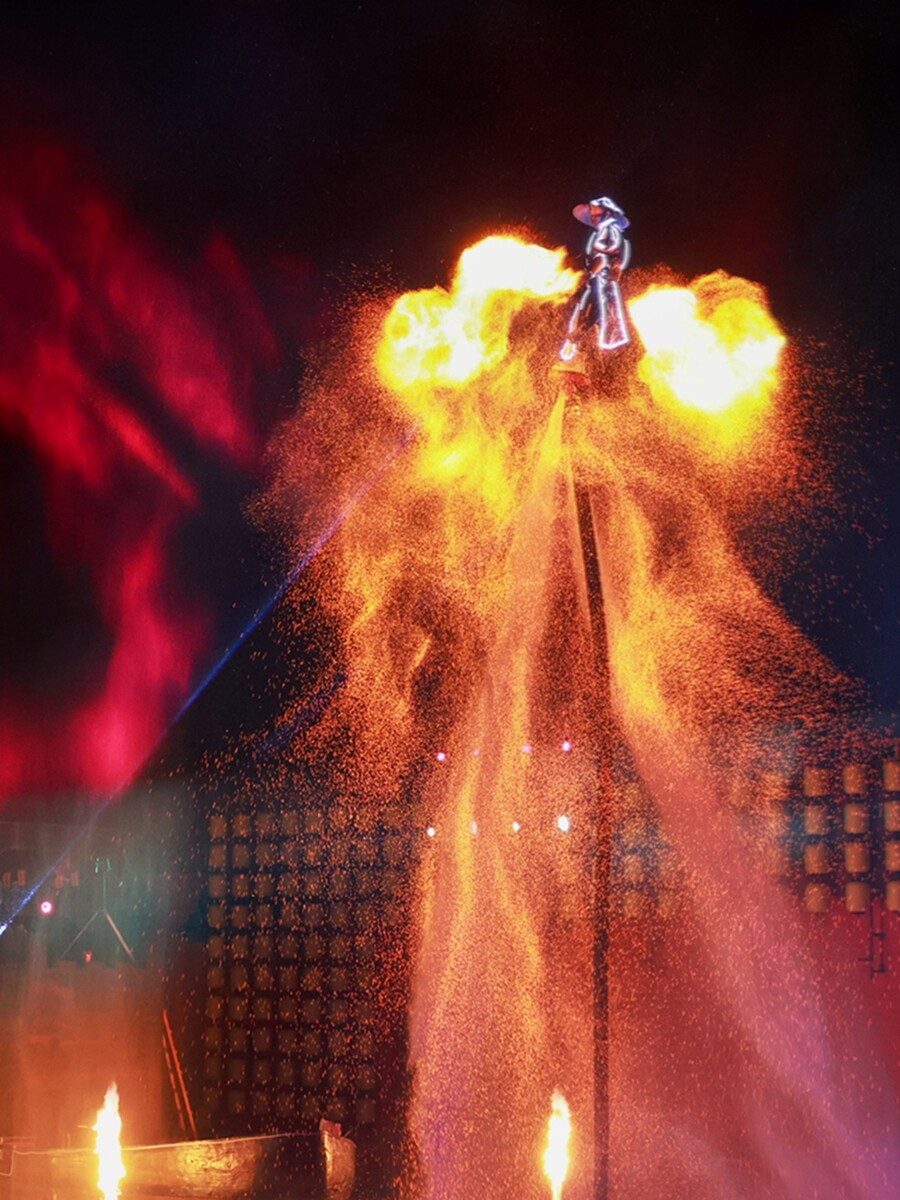 德州伍捌玖街区的演绎,有表演人员及顾客观众,拍摄于2025年8月份。