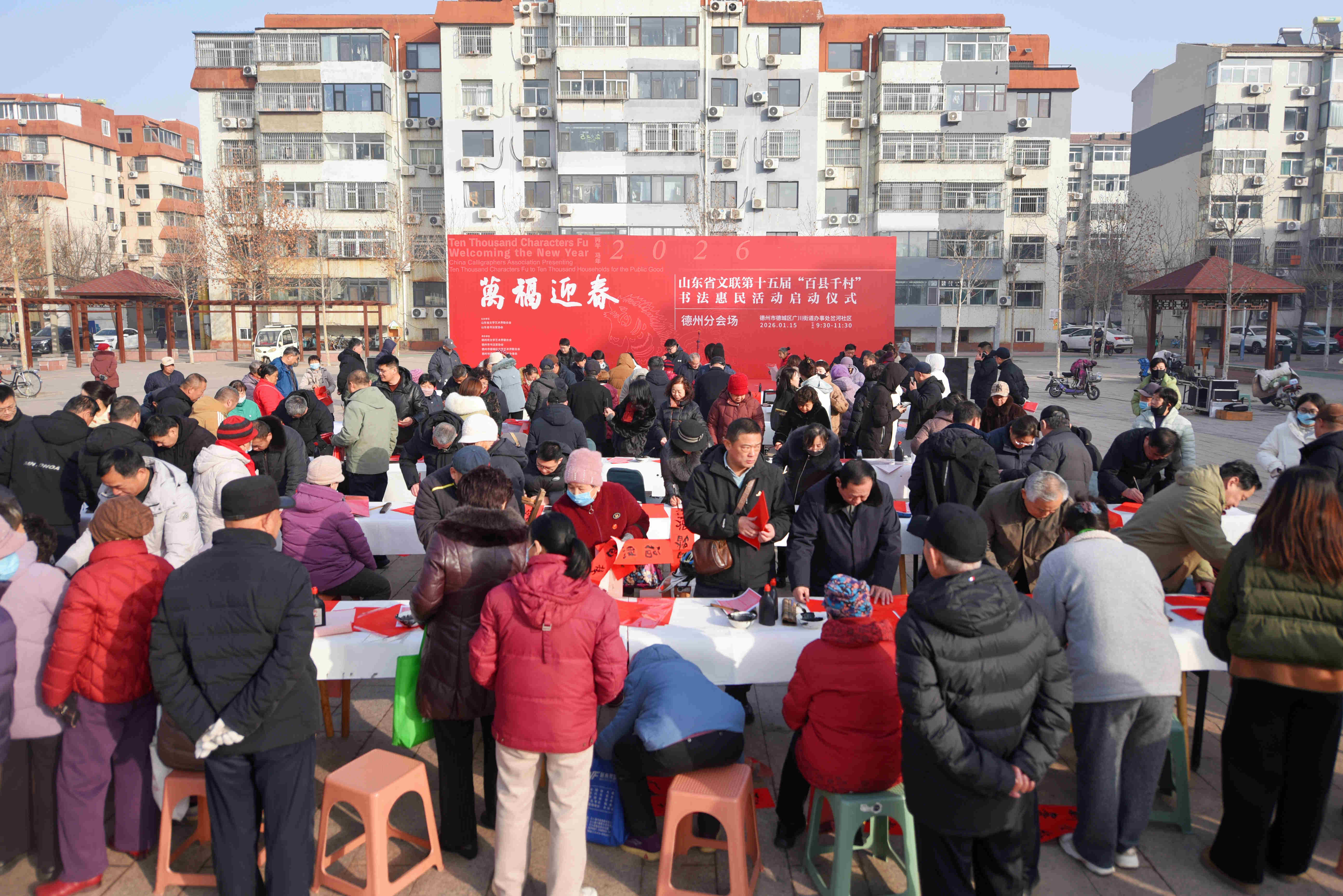 德州晚报全媒体讯 1月15日,万福迎春——山东省文联新时代文明实践第十五届“百县千村”书法惠民活动(德州分会场)在德城区岔河社区启动,各县市区书法惠民活动同步启动。
