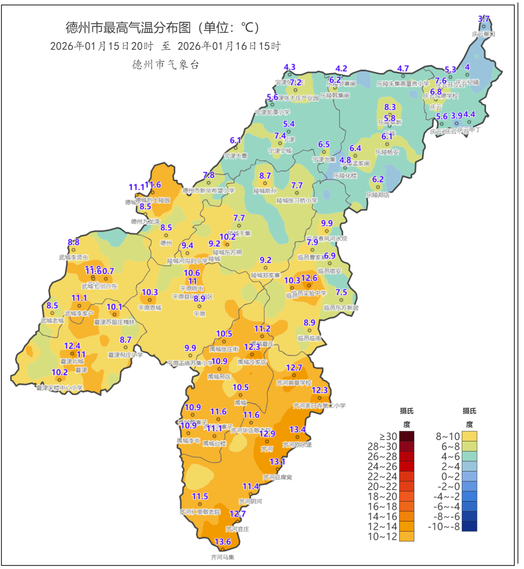 19日夜间多云,北风3级,最低气温-13℃;20日白天多云,东北风2级,最高气温-4℃。