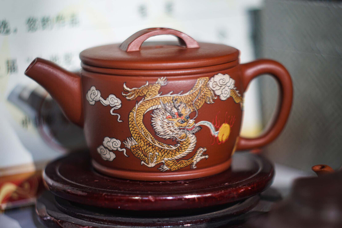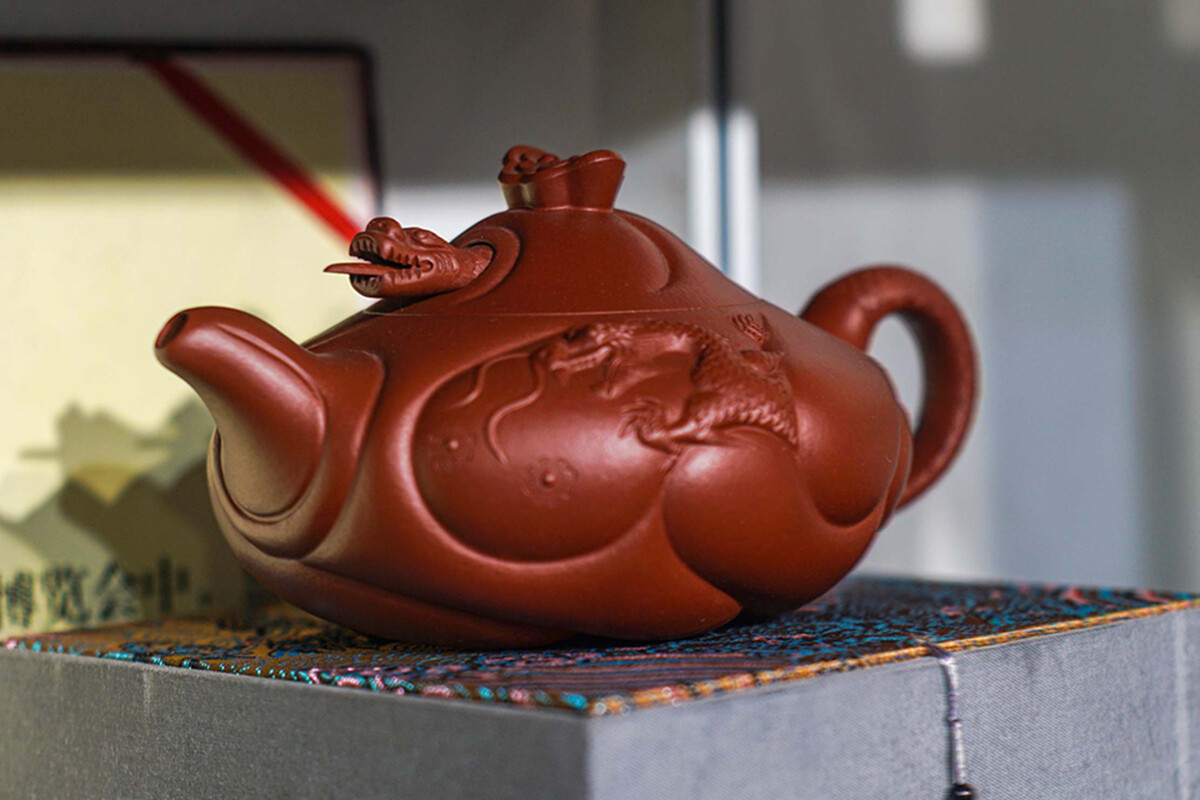 鱼化龙紫砂壶,2025年11月9日,摄于德州体育公园茶博会