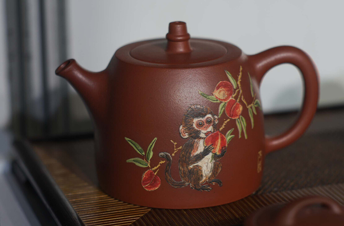 灵猴献寿汉铎紫砂壶,2025年11月9日,摄于德州体育公园茶博会